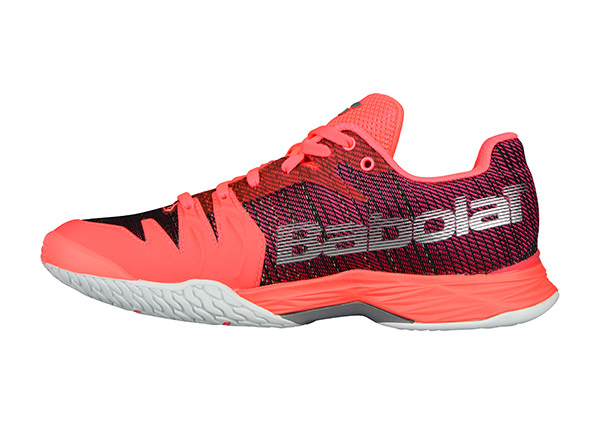 Overcome slow footwork when you wear the Babolat Men`s Jet Mach II Clay Court Tennis in Fluro Pink and Silver! Usually you see your footwork slow when your feet become tired. This shoe is a staple for quickness and support on your hard working feet! The upper is extremely light yet supportive with its Matryx fabric that`s a mix of Kevlar and Polymide threads. The bottom of the shoe starts with a Fluro Pink with Silver and the side of the shoes has a faded color layering with the Babolat logo, Babolat print logo in white and the negative Jet detail near the toe. To keep running the court like you need to the heel has a tennis specific cushioning system and the outsole is known to be durable with a Michelin Premium composition.