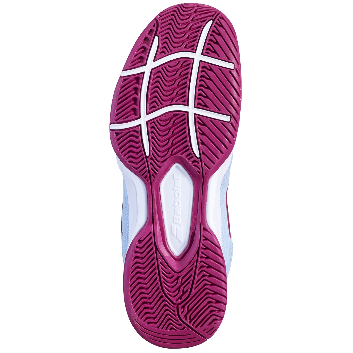 The Babolat Women’s SFX3 All Court Tennis Shoes (Clearwater/Cherry) has a TPR (Thermo Plastic Rubber) tube compression system positioned beneath the heel for exceptional shock absorption.