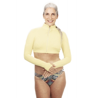 BloqUV Women's Long Sleeve Full Zip Sun Protective Athletic Crop Top (Lemon Yellow)