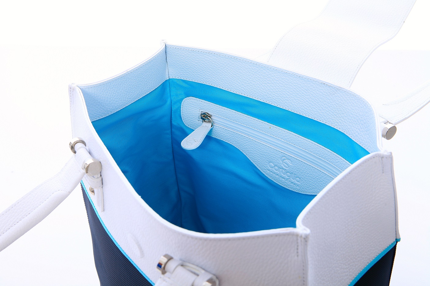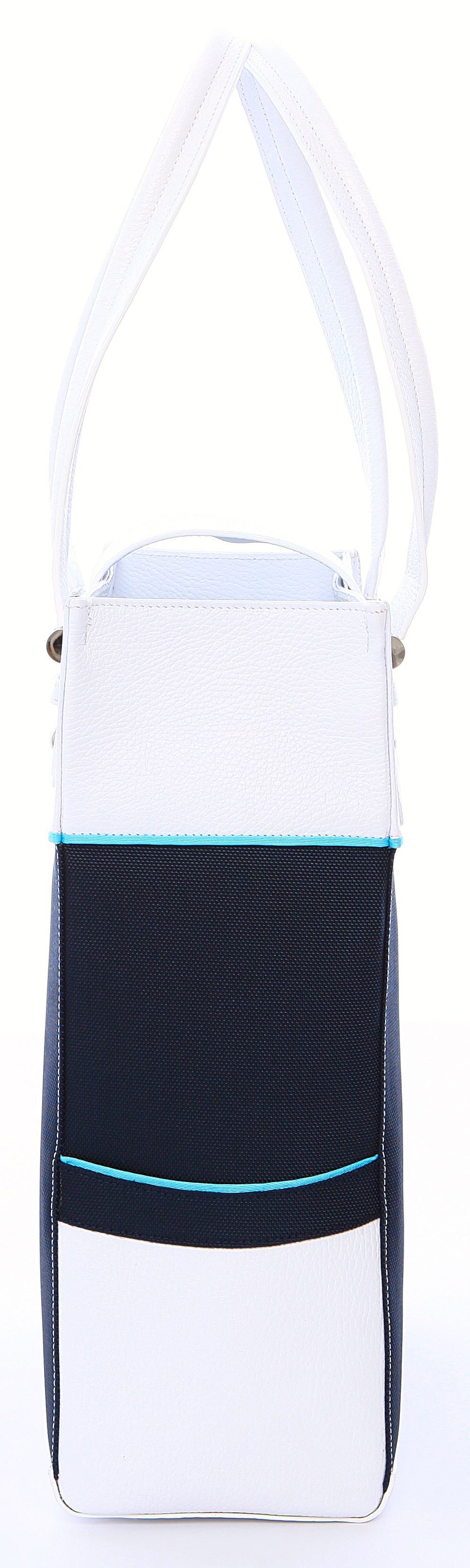 The Rendezvous is our newest rendition of a stylish tote! More than just a tennis bag… The “Rendezvous” bag keeps you stylish from the office to the court to your after play lunch. Made in Italy, with the finest materials, the sturdy construction holds 2 racquets easily. Detailed in turquoise, with the finest craftsmanship, this bag clearly makes you look great, feel great & play great! The two outside pockets allowing easy accessibility for your cell phone and keys.