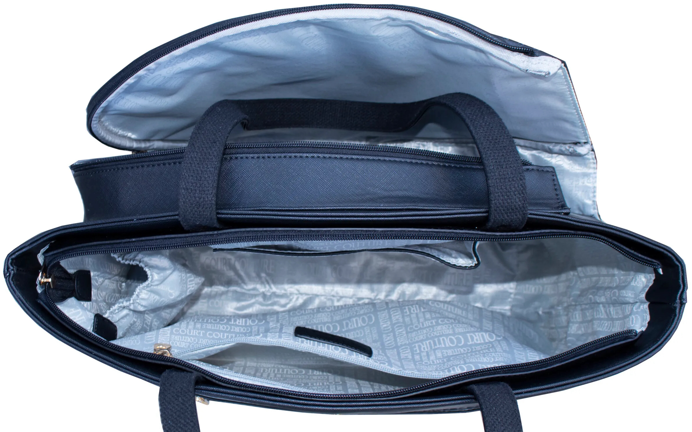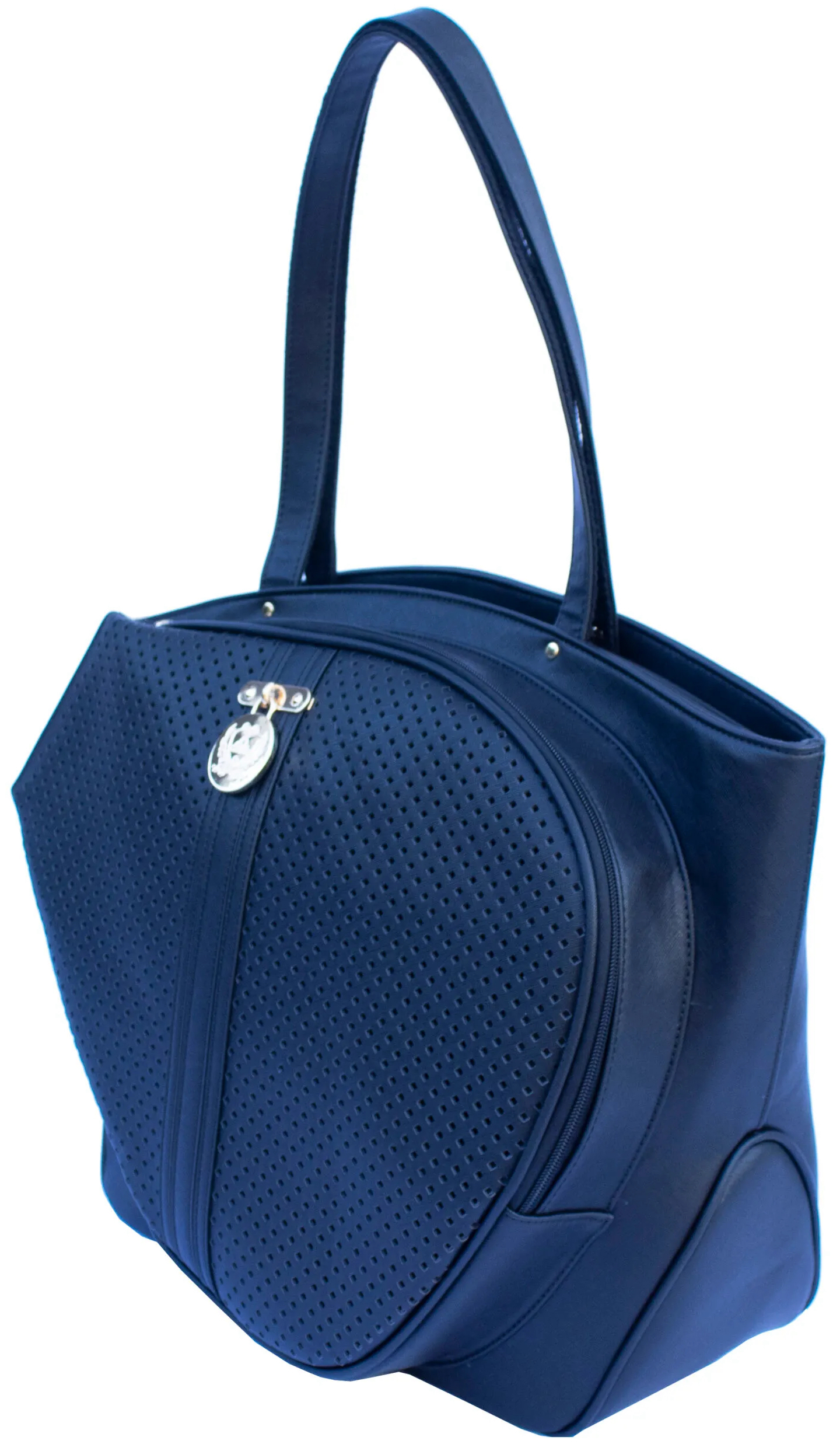 The Court Couture Cassanova Perforated Tennis & Pickleball Bag stands out with a distinctive perforated design, seamlessly blended with the timeless stripes adorning the front of the bag. The monochromatic color scheme exudes an air of elegance and simplicity. This bag offers spacious compartments and convenient pockets while remaining lightweight. The matching purse adds a nice touch to the entire ensemble.