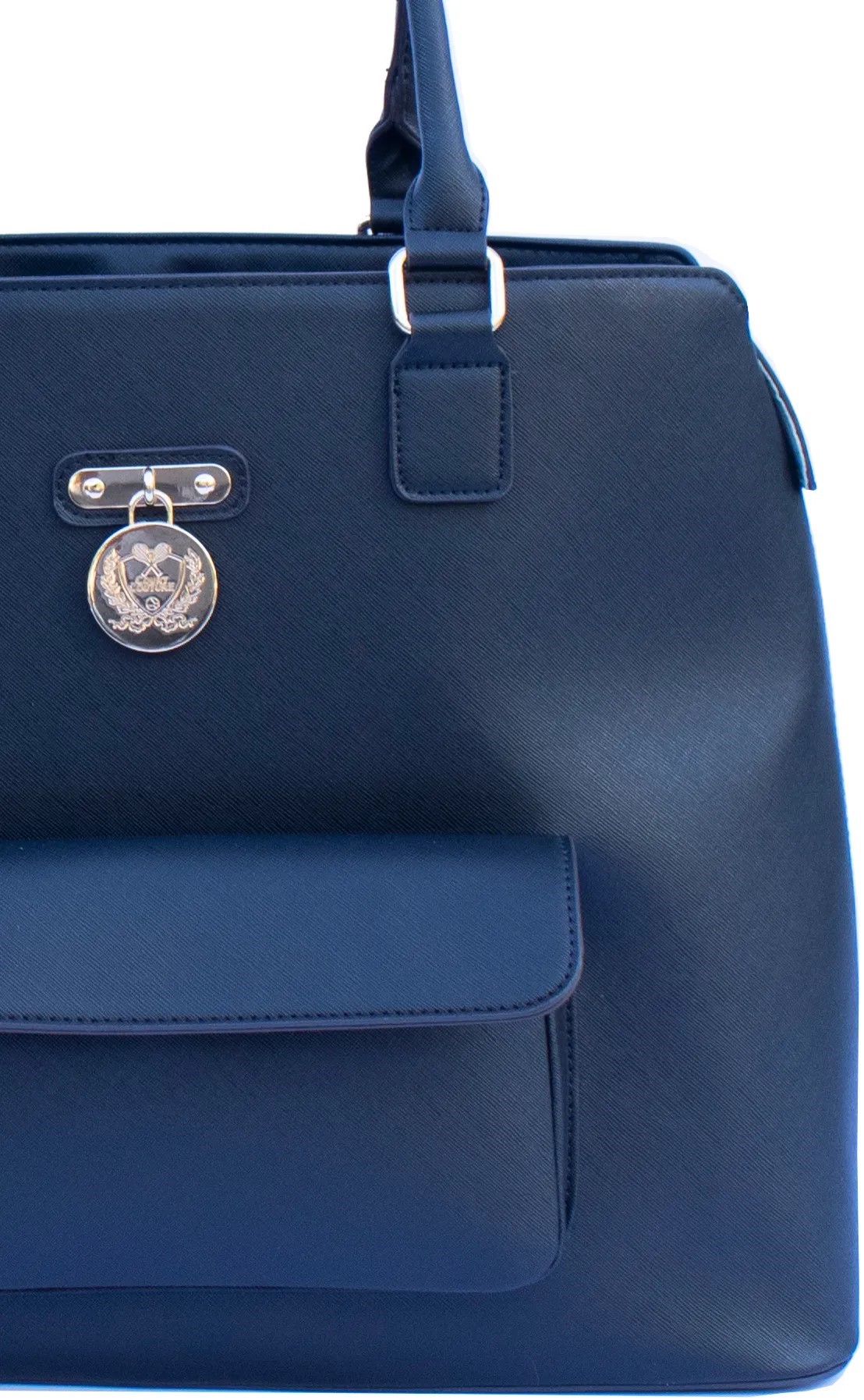 The Court Couture Monte Carlo Tennis & Pickleball Bag design inspired by the simplicity of life, exudes cleanliness and elegance. It serves as a multifunctional accessory, suitable for both sports and everyday use, with a cleverly hidden racquet compartment nestled between two compartments, accommodating 2 tennis racquets, 2 pickleball paddles, or a laptop. Additionally, a large front pocket offers added convenience, while a matching purse is included for practicality.