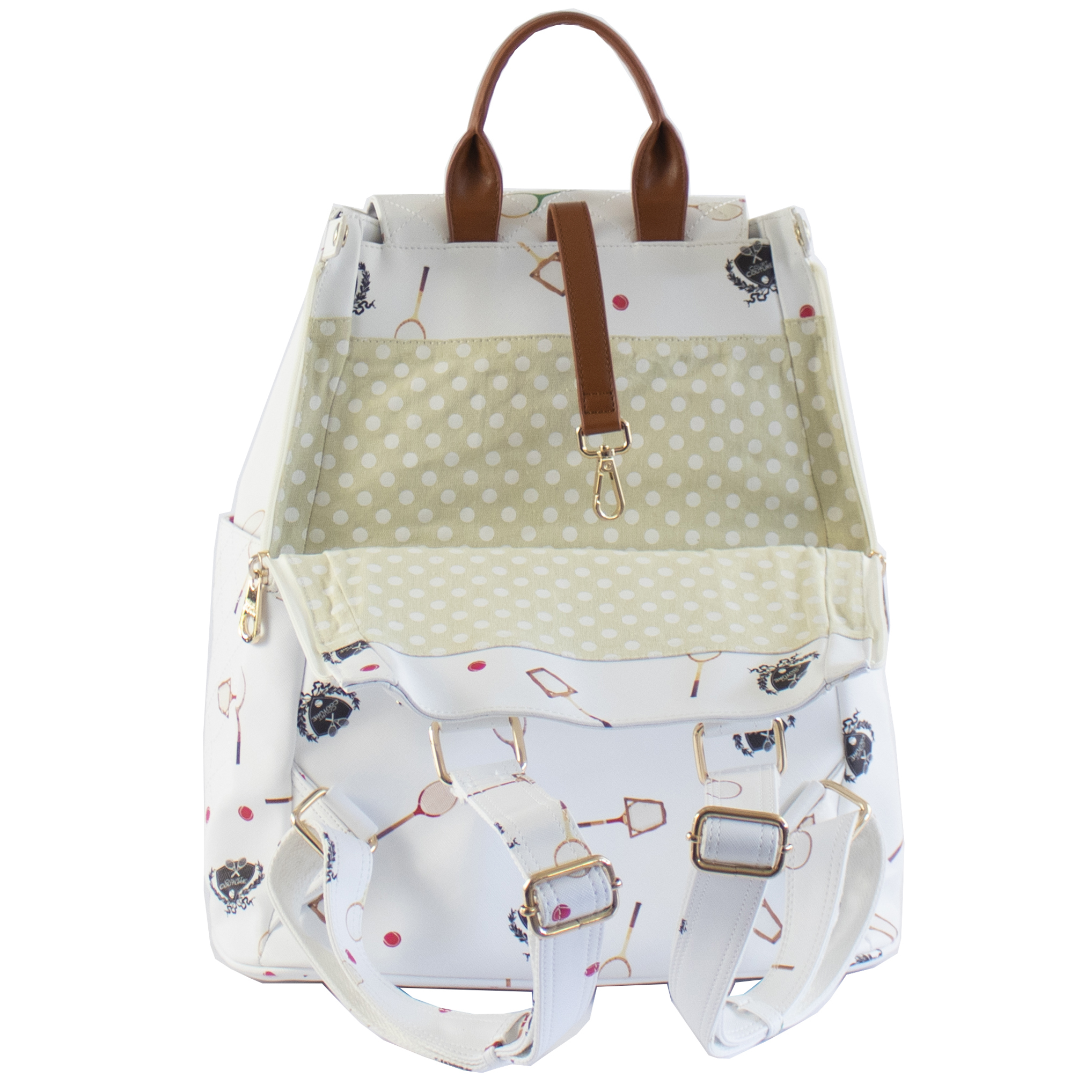 The Court Couture Hampton Monogram tennis backpack is new this year. This classic print never goes out of style and it is always very popular. This print is also available in the Cassanova style.