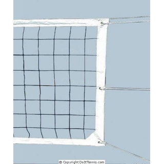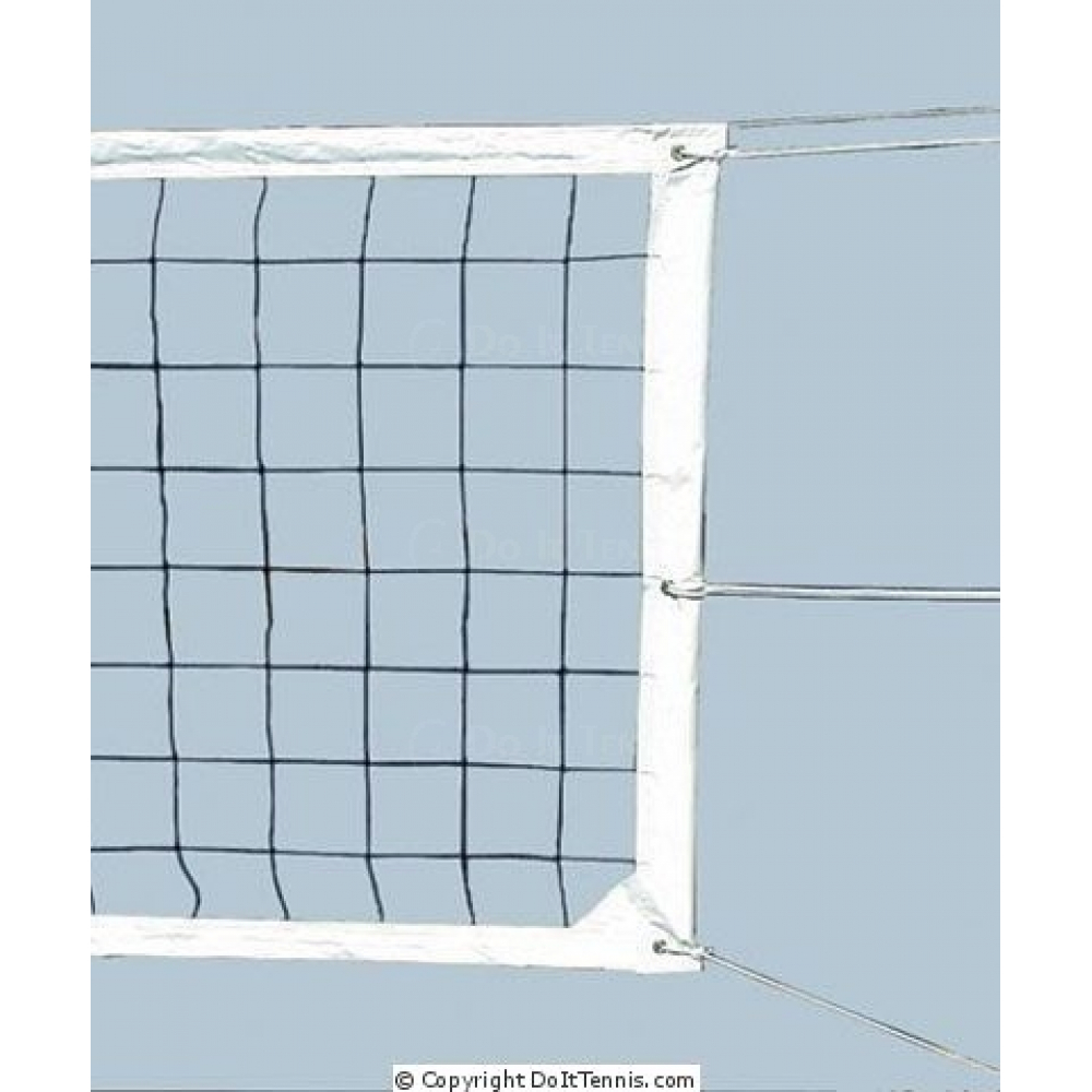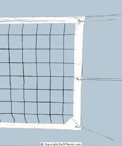 The Volleyball Net # 231 has a 2.5mm polyethylene body with a rope cable, 3’ x 32’