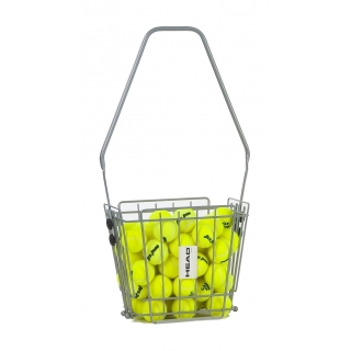 Holds up to 85 balls. Handle adjusts up to 5’ to accommodate various heights of players. Includes a foam cushion grip fitted to the handle. Easy grip knobs make for a ‘no tool’ assembly. Gray powder coat.