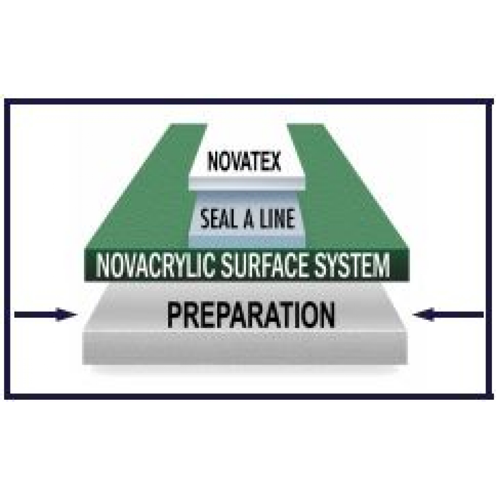 The Nova NovaBond Tennis Court Resurfacing Slurry 5 Gallon Pail is an acrylic polymer emulsion developed for the purpose of improving the bonding of Novacrylic surface systems to uncoated pavements. Novabond, when used in a mixture of Portland cement, sand and water, then applied to clean concrete in slurry form, casts a film of acrylic-concrete over the pavement. This acrylic-concrete coating has excellent adhesive characteristics to both concrete and acrylic coatings. While the Novabond slurry coat acts as a laminating agent, and bonds the entire surfacing system together, it also fills some voids, leaving a more uniform surface to apply the Novacrylic coating system over.