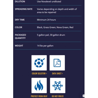 The Nova NovaLevel Tennis Court Leveling Compound (5 Gallon Pail) is an acrylic paste that is designed for patching and correcting defects in asphalt tennis courts and other pavements. NovaLevel is easy to use. This acrylic court repair material is supplied in a ready-to-use paste form. It has the consistency of mortar. Because of the high solids content, NovaLevel is extremely resistant to shrinkage. The combination of binders, fillers, and high-grade acrylic emulsion used in this formula, make it an ideal product to use for correcting defects such as birdbaths, minor cracks and gouges in tennis court surfaces.