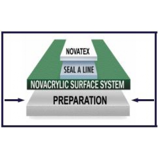 Allow Novalevel to dry a minimum of 24-hours prior to application of Novacrylic surface coating.