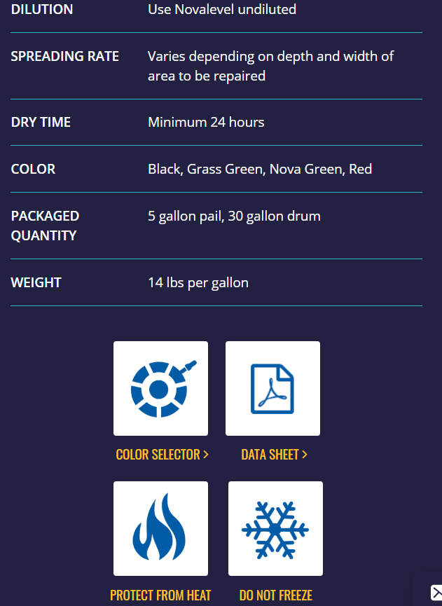 Repairing deep depressions requires multiple applications of Novalevel, not to exceed 3/16” per application.