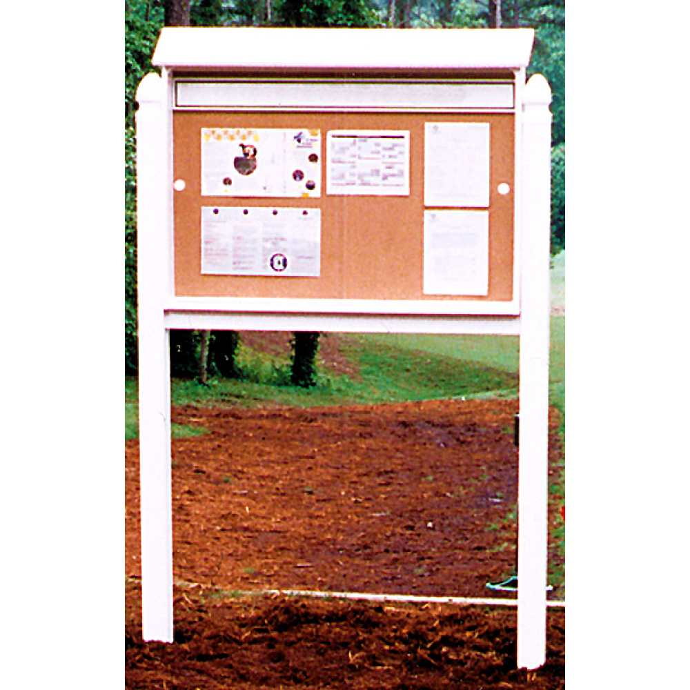 Includes 2 vinyl-covered posts with decorative end caps, horizontal crossbar, all necessary hardware.