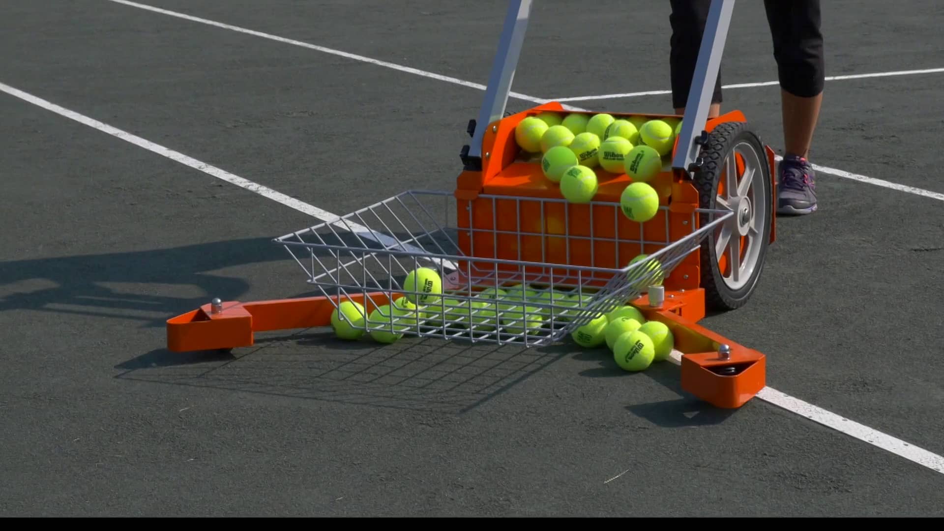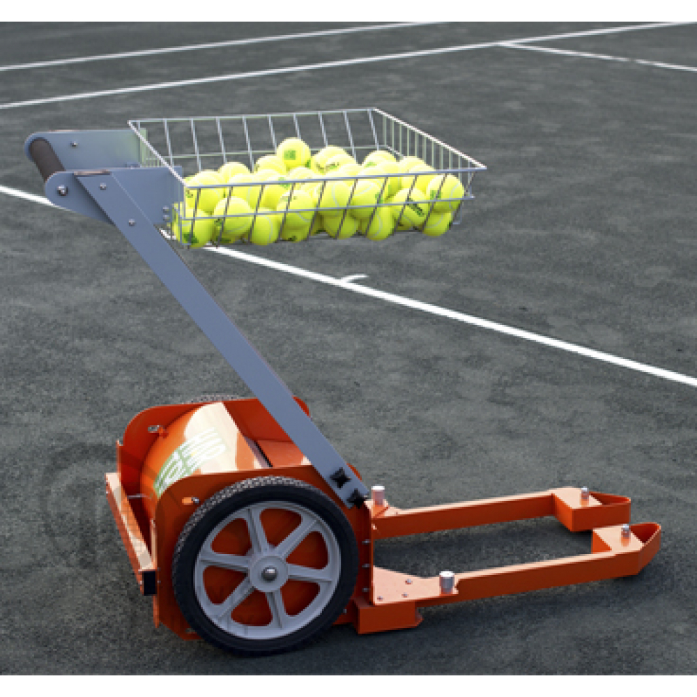 This is the Har-Tru ball mower basket only. It is not the whole ball mower. When a mower captures too many balls, the wheels lock up and the unit skids across the surface. On a clay court, the friction between the wheel on the mower and the court surface is lessened and skidding is more frequent. This leaves marks on the court that are unsightly, and on clay affect ball bounce and play.