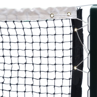 Trust one of the most recognized names in sports equipment to manufacture the ideal choice for your court. MacGregor® Varsity 300 Tennis Net 42’ withstands the rigors of even the most intense competitions at school, the club or community park. Black 2.5m twisted polyethylene boasts a breaking strength of over 225 lbs. The 5mm coated steel cable has a 3000 lb. test strength. Heavy-duty vinyl headband has 4 rows of lock-stitching to provide reinforcement and a 320 lb. tensile strength. Heavy-duty vinyl on sheath tapes on the bottom and sides. MacGregor Varsity 300 Tennis Net measures 42’ L and includes side pockets.