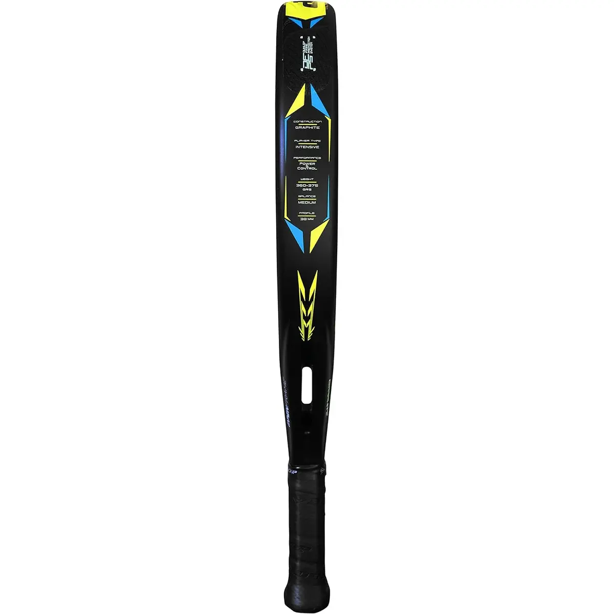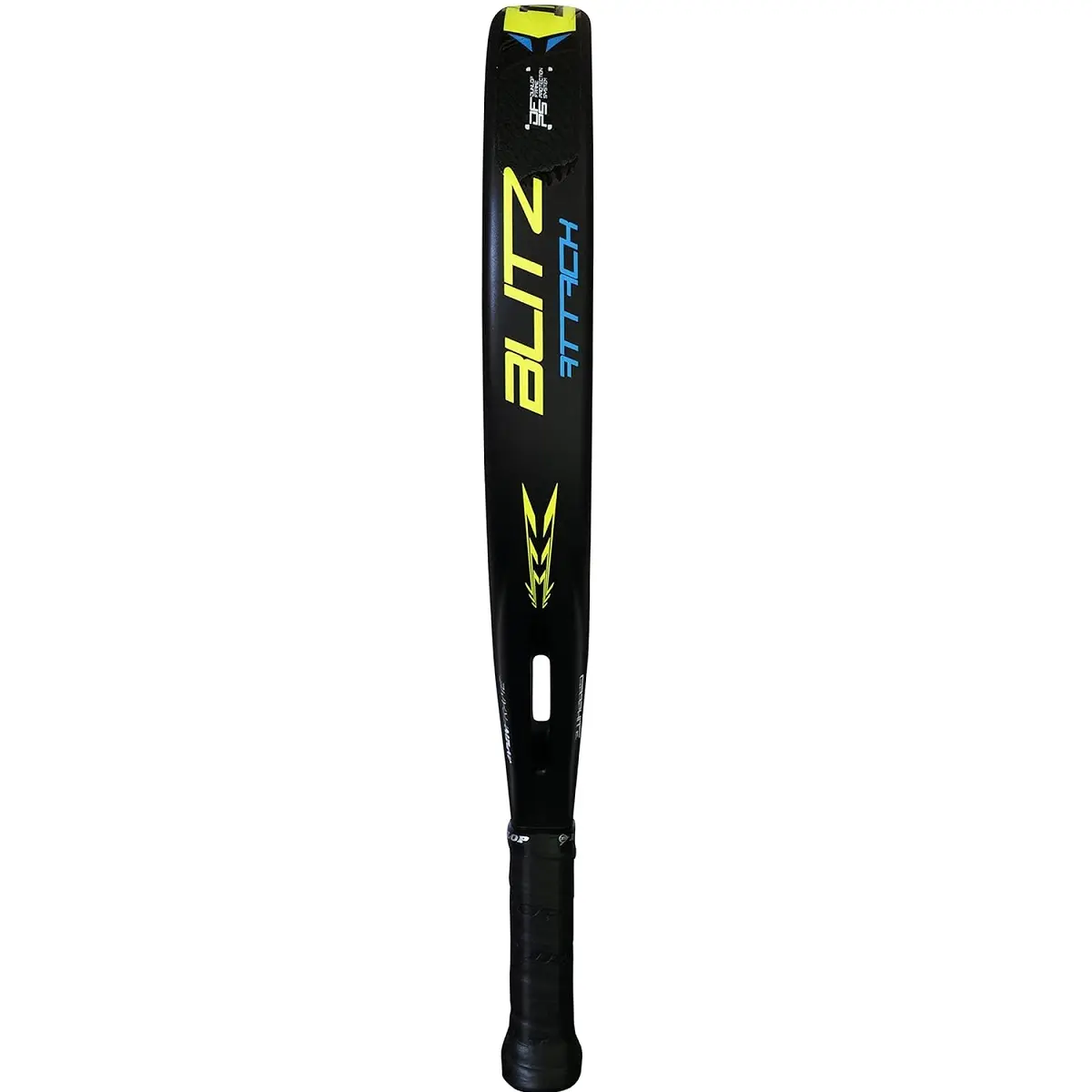 The Dunlop Blitz Attack Padel Racket (Multicolored) has premium graphite construction and open frame technology at the base of the frame. This provides increased maneuverability and frame stiffness for extra control. The Padel has a Pro EVA core for an ideal combination of power and control and the Extra Grip technology gives increased spin for more penetrating shots. For Intensive Players.