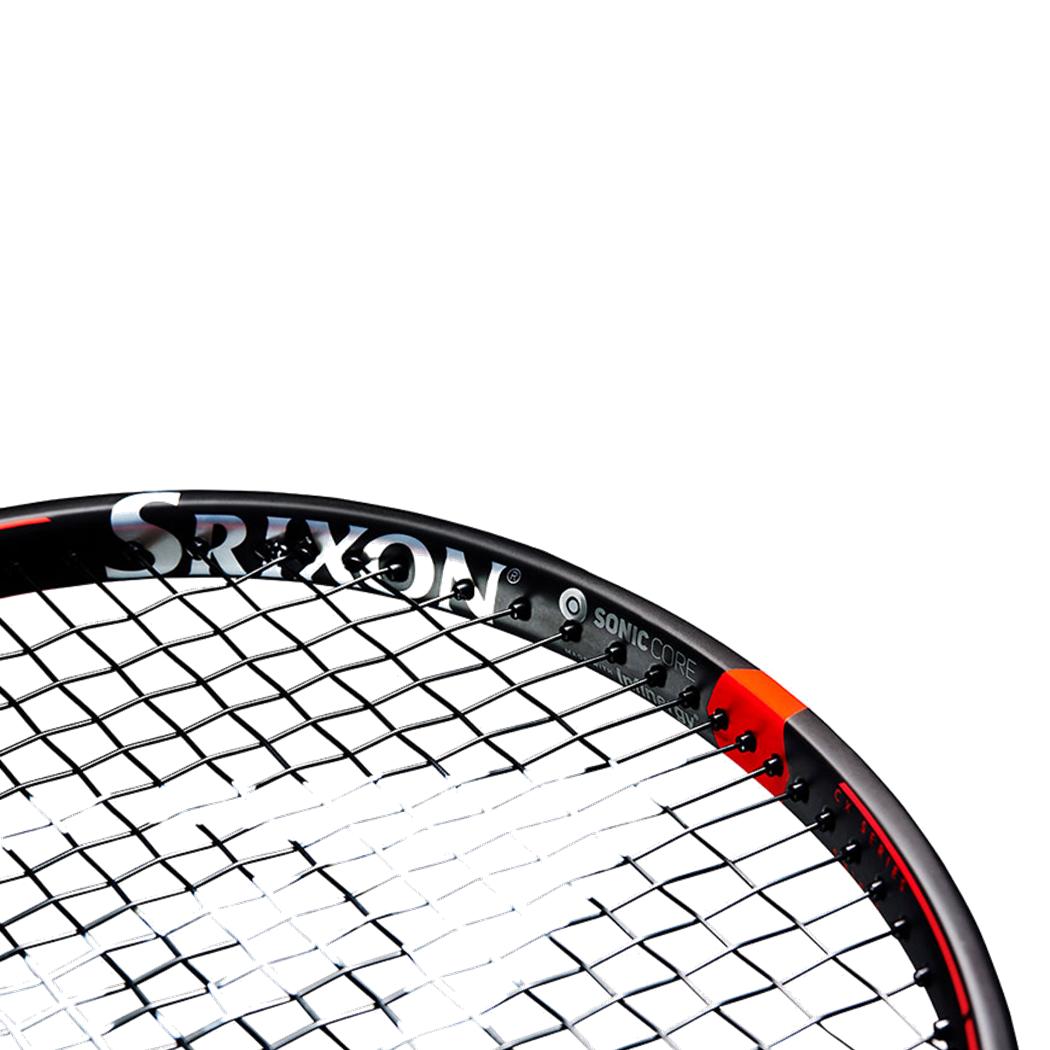 This frame is embedded with Dunlop’s ‘Sonic Core with Infinergy’, a foam material developed by BASF, which provides better energy return and also dampens unwanted shock and vibration. The result is greater ball feel and extra arm energy going into the 2nd and 3rd sets.