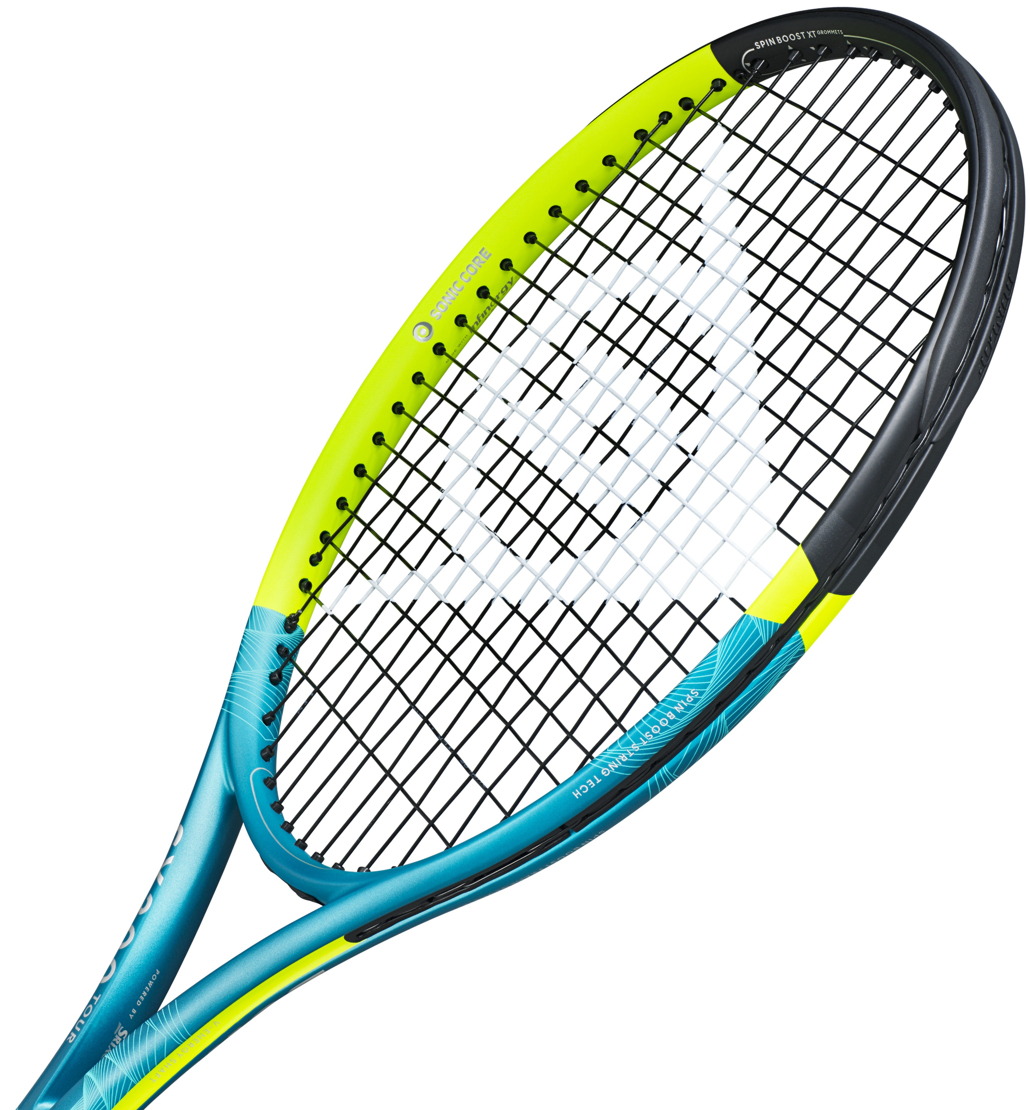 Spin Boost String Tech - Innovative enlargement of the string bed that creates more even power distribution and spin generation.