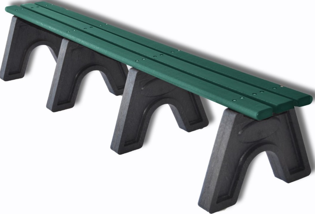 The Frog Furnishings Sport Tennis Court Bench is made from Resinwood plastic that reduces landfill usage and helps fight deforestation.
