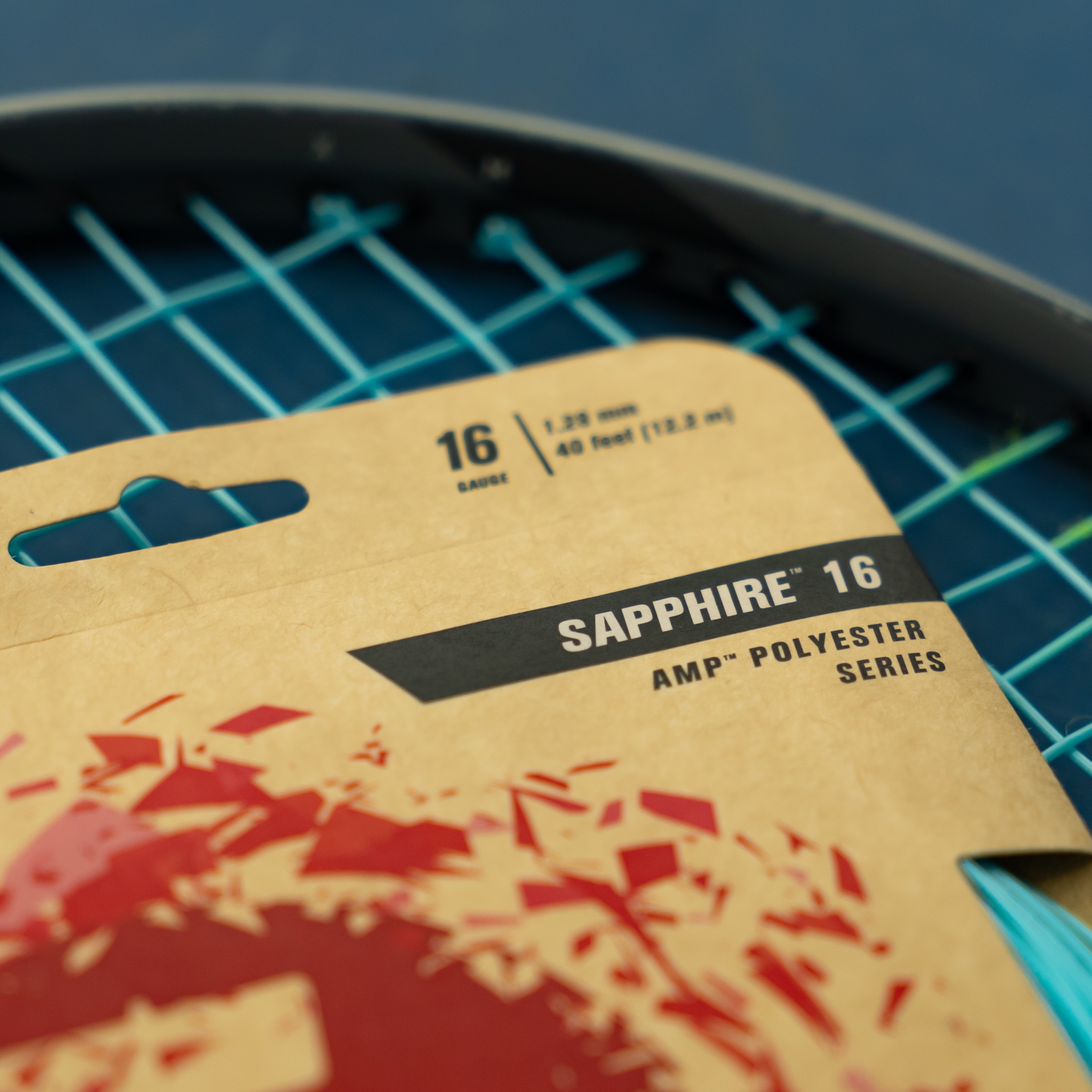 The Gamma AMP Sapphire 16g Tennis String is engineered for high-level performance with better energy return, feel, and resilience.