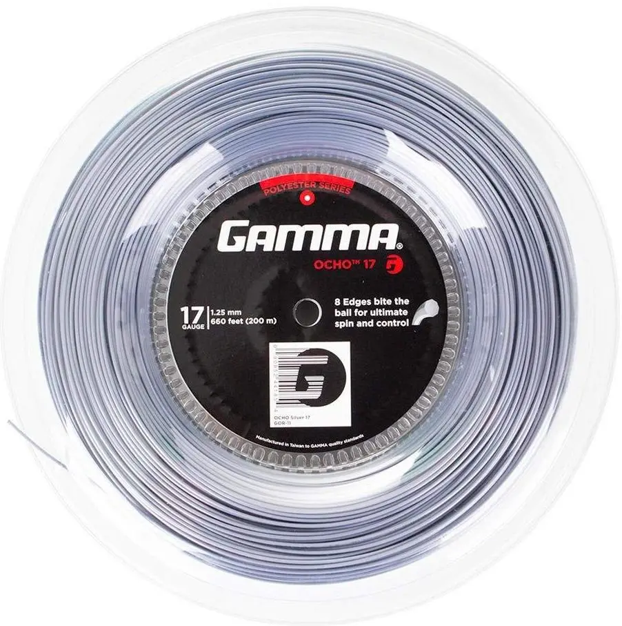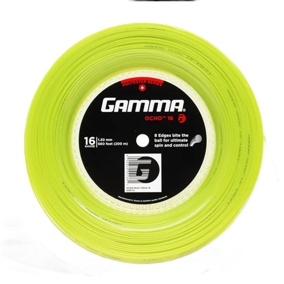 The Gamma OCHO 16g Tennis String (Reel) is a high energy co-polyester material manufactured with a proprietary, multistage drawing process to increase strength and minimize tension loss for maximum durability and longer play life.