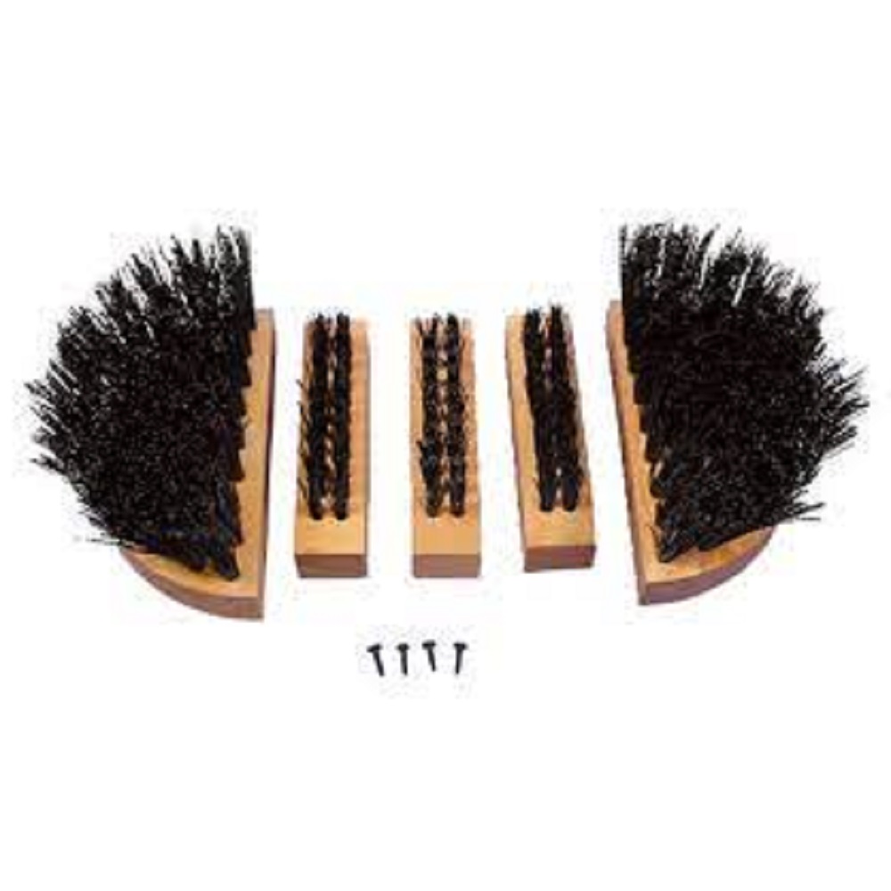 Three heavy duty nylon brushes on the bottom and two heavy duty poly brushes on the sides.