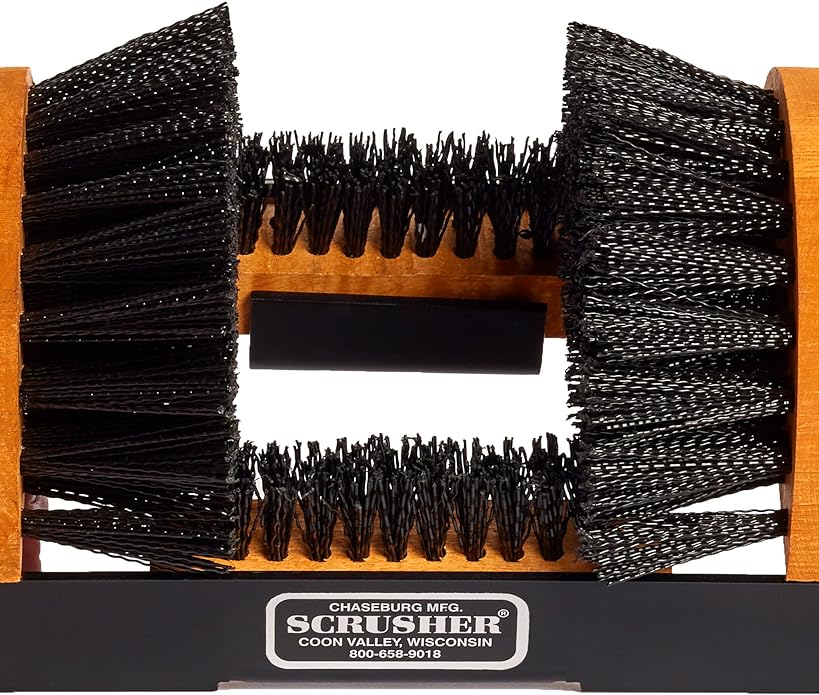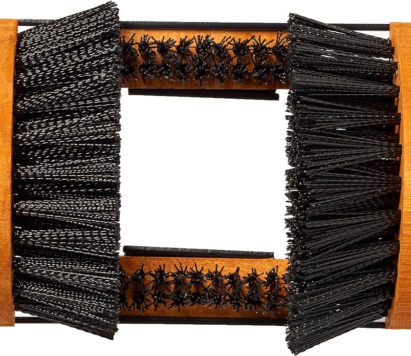 Three heavy duty nylon brushes on the bottom and two heavy duty poly brushes on the sides.