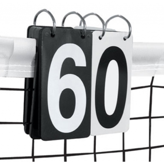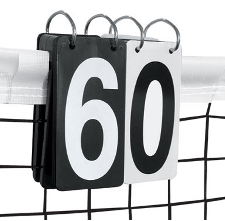 Made of sturdy styrene, it sits securely on the net showing score on both sides