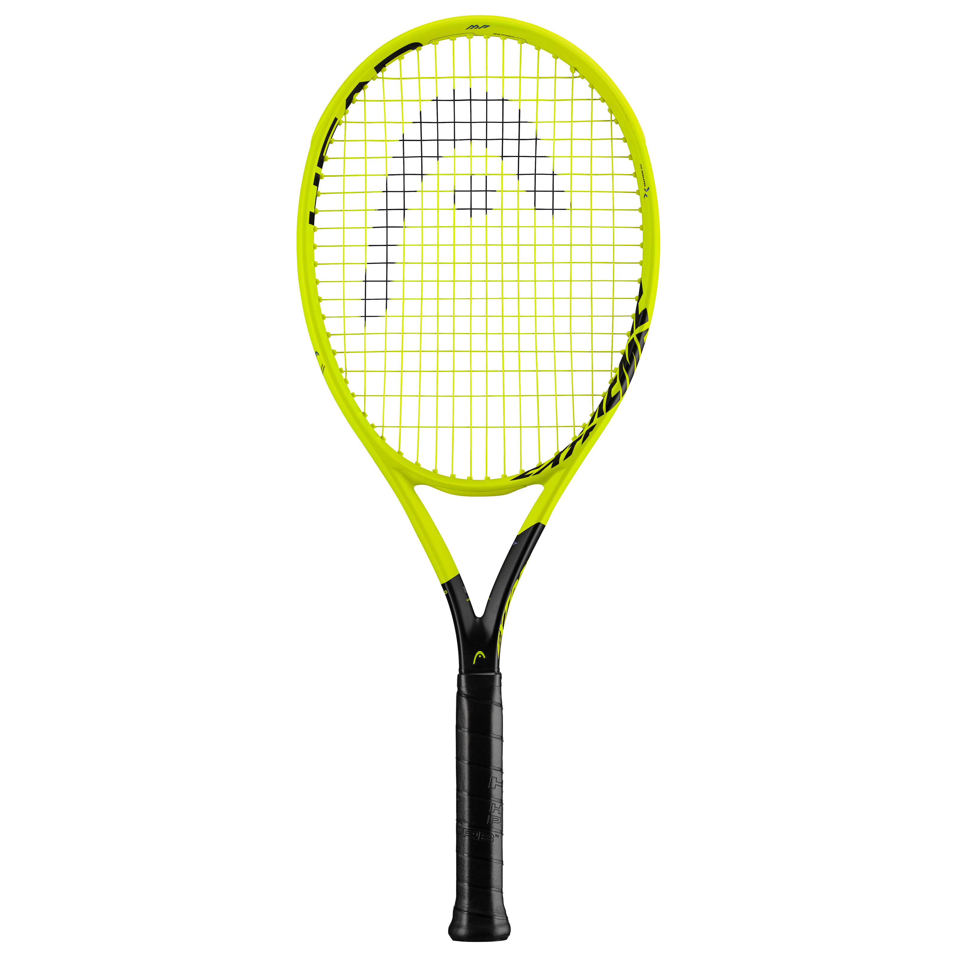 The Head Graphene 360 Extreme MP tennis racquet provides extreme spin and power to the aggressive playing tournament player. Slightly lighter than the new EXTREME PRO model, the EXTREME MP features the new Graphene 360 technology which provides greater stability and optimized energy transfer for more power, thus more ball speed, as well as a 16/19 string pattern that makes this one the ultimate spin machine. Its spin grommets enable more string movement that results in a powerful trampoline effect upon ball impact. The entire EXTREME silo got an extreme new design with an asymmetrical color-blocking of neon yellow and deep blue, reflecting the new design identity.