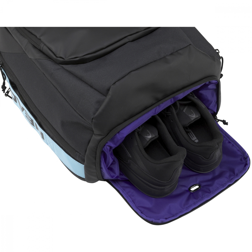 Endorsed by Alexander Zverev and Ashleigh Barty, the Head Gravity r-PET Tennis Backpack has several main compartments to help you organize your belongings, including room for one racquet. Thanks to its wide opening, you have very easy access to the main compartment as well to the additional smaller accessory pockets, while there is also an integrated shoe compartment and an adjustable bottle pocket. The Gravity r-PET Tennis Backpack is an illustration of how HEAD recognizes its responsibility to be more sustainable and to help protect the planet, with the hangtag made from recycled paper and tied with hemp cord.