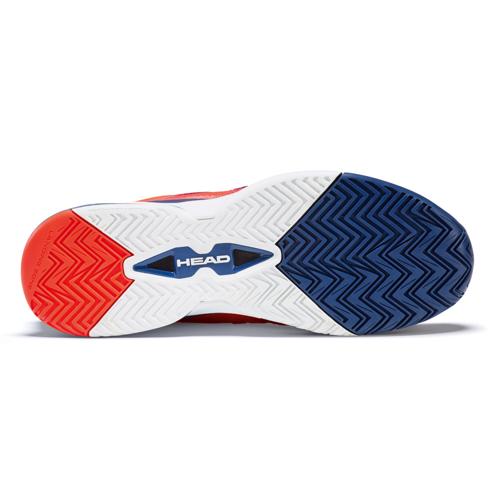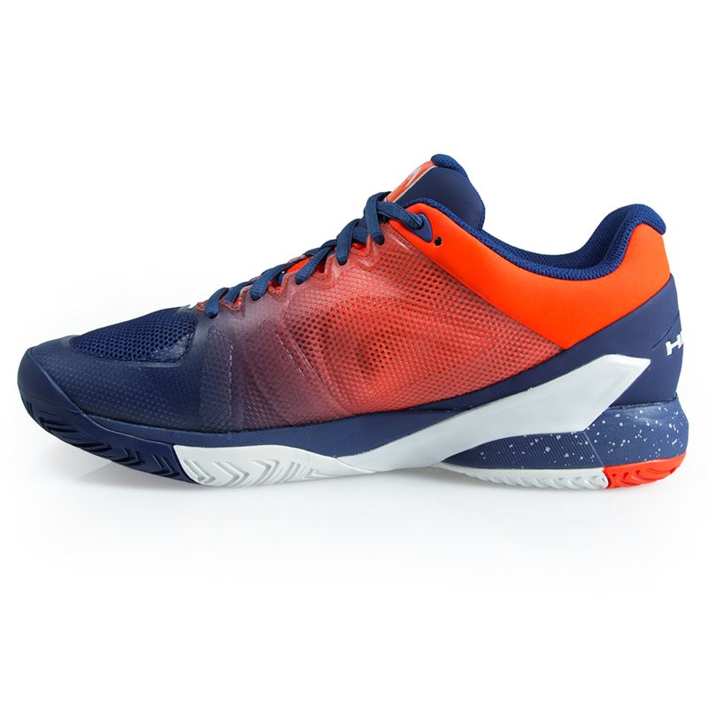 Features include Head Energy Frame for ultimate stability and support, a low to the ground dual density midsole, and TPU anti-torsion shank with forefoot spring for forward motion. The 4D Shell breathable mesh upper and tongue allows maximum air flow and comfort. Head Hybrasion + rubber compound provides improved durability and traction on the court. Color: Blue/Flame Orange