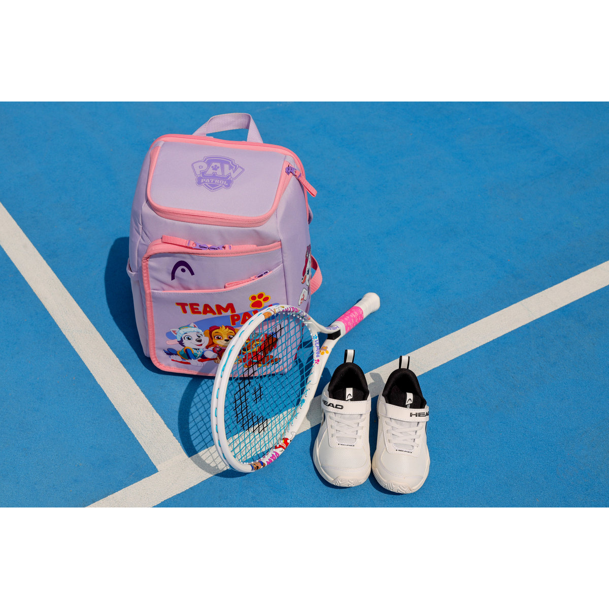 The Head Paw Patrol Junior Tennis Backpack is made for kids who love sports and adventure. This 15L backpack has a special compartment to carry a tennis racquet, making it great for young players. With plenty of room for school supplies, sports gear, and other essentials, it’s both practical and fun. The purple and pink design features Paw Patrol’s favorite characters, bringing extra joy every day. Lightweight and easy to carry, it also has adjustable straps for a comfortable fit, plus a front zipper pocket to keep important items within reach.