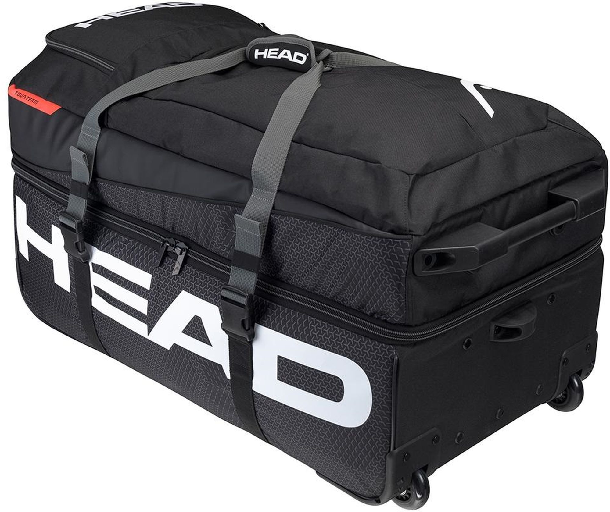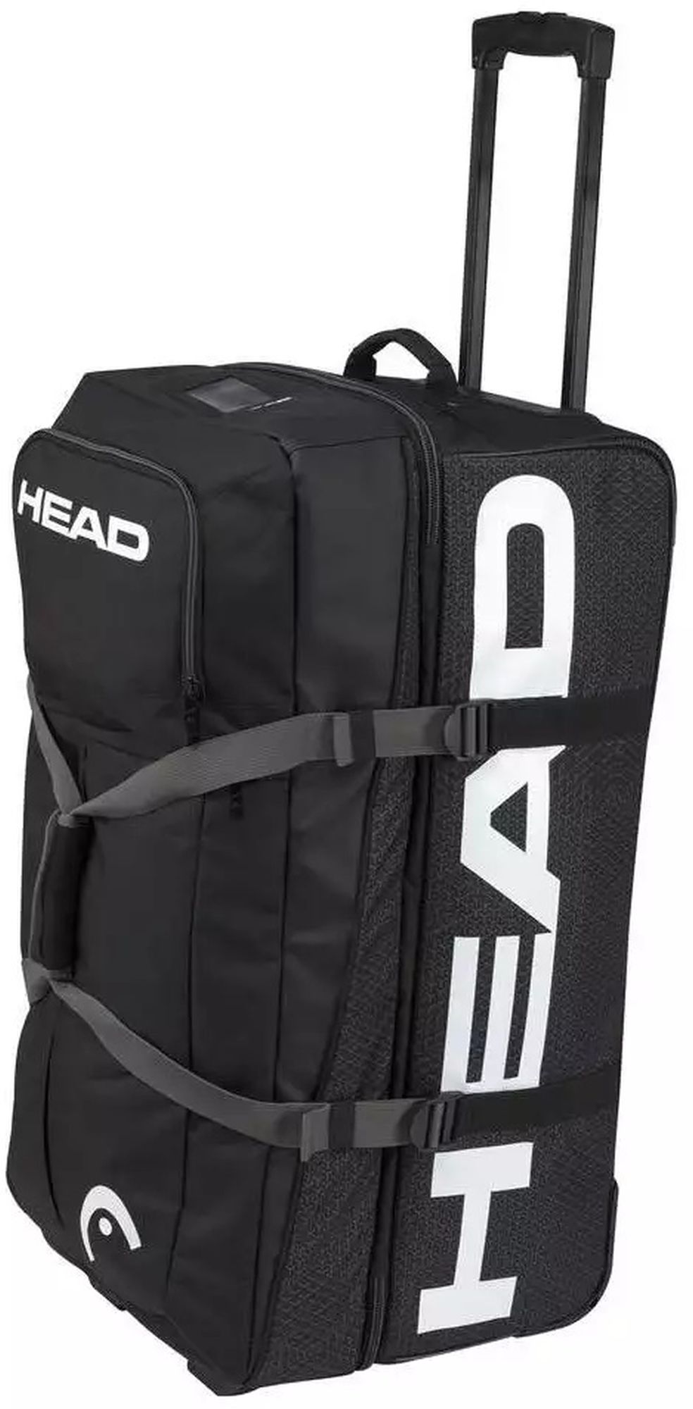 The Head Tour Team Travel Tennis Bag lets you travel in style. Along with a new colorway, a contemporary shape and plenty of space, this bag comes with modern, robust functionality to make traveling easy. A storable telescope handle means you have the option of pulling the bag to the airport departure gate, while the bottom and edge protection help to keep your belongings safe. Packing and unpacking the Tour Team Travel Bag is easy, with its three main inside zipper compartments and two outside zipper compartments.