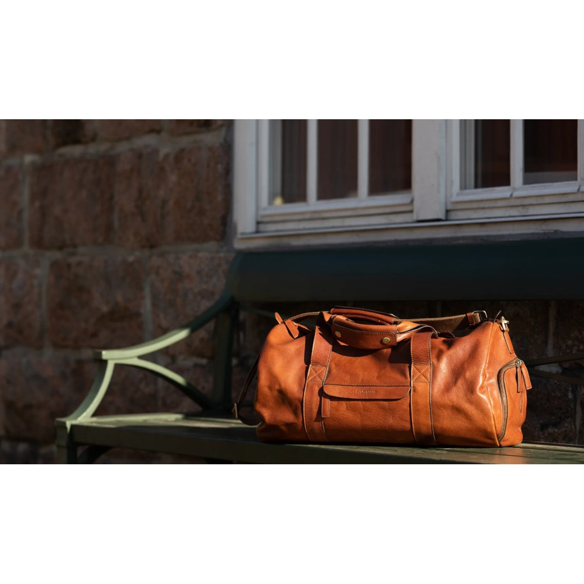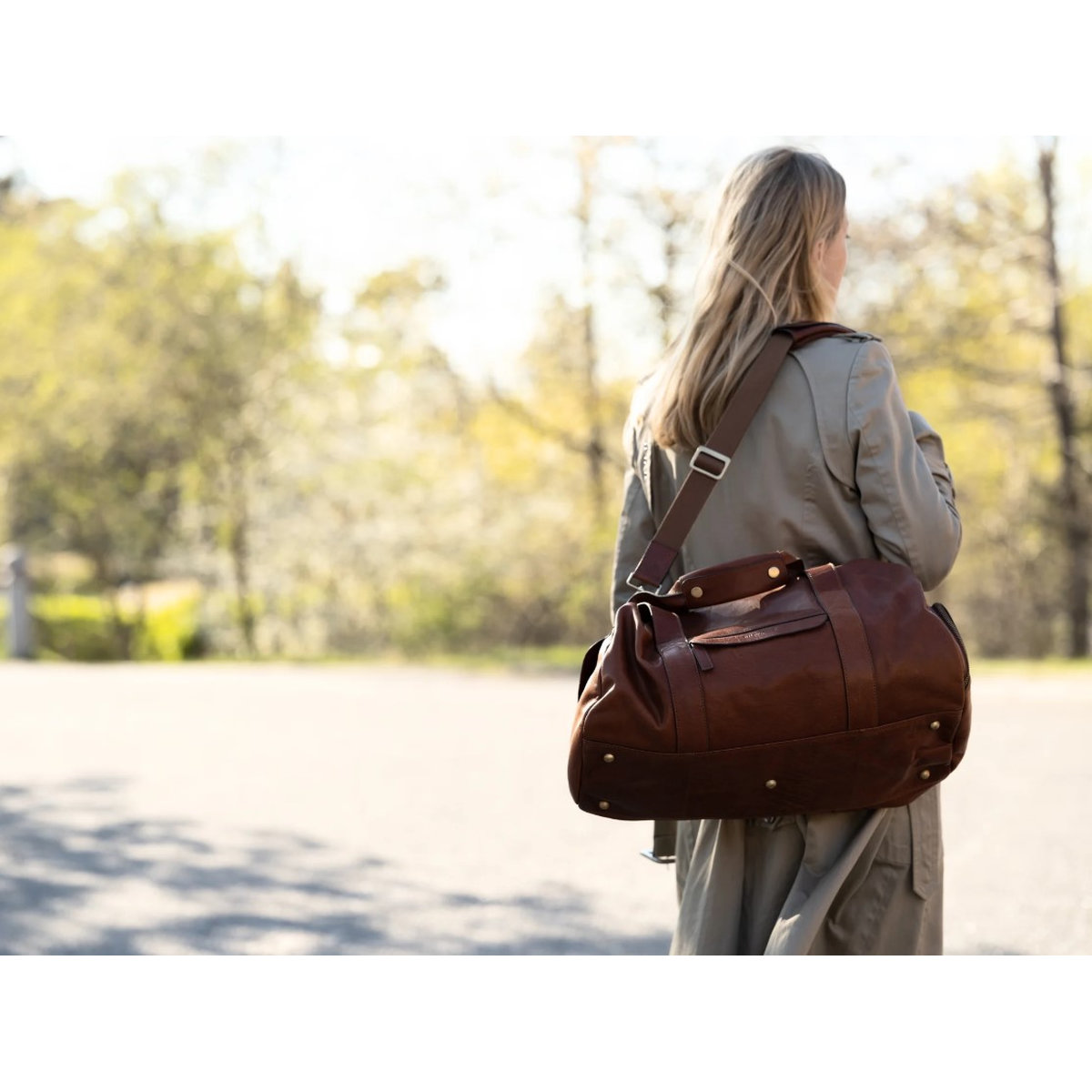 Luxury leather weekend duffel bag in genuine premium vegetable tanned leather.