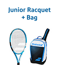 The Junior Tennis Racquet + Ball Bundles have been selected for kids below the age of 12. Each bundle includes a entry level junior tennis racquet and three tennis balls. Racquets can be purchased in several lengths and there are some bundles with backpacks instead of tennis racquet bags depending on the brand and style.