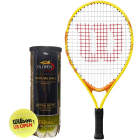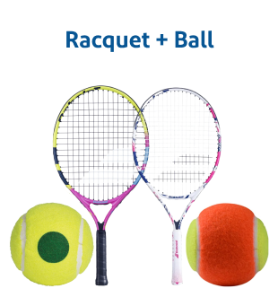 The Junior Tennis Racquet + Ball Bundles include a junior tennis racquet and three tennis balls. There are several different tannis ball options depending on the racquet and skill level of your junior player.