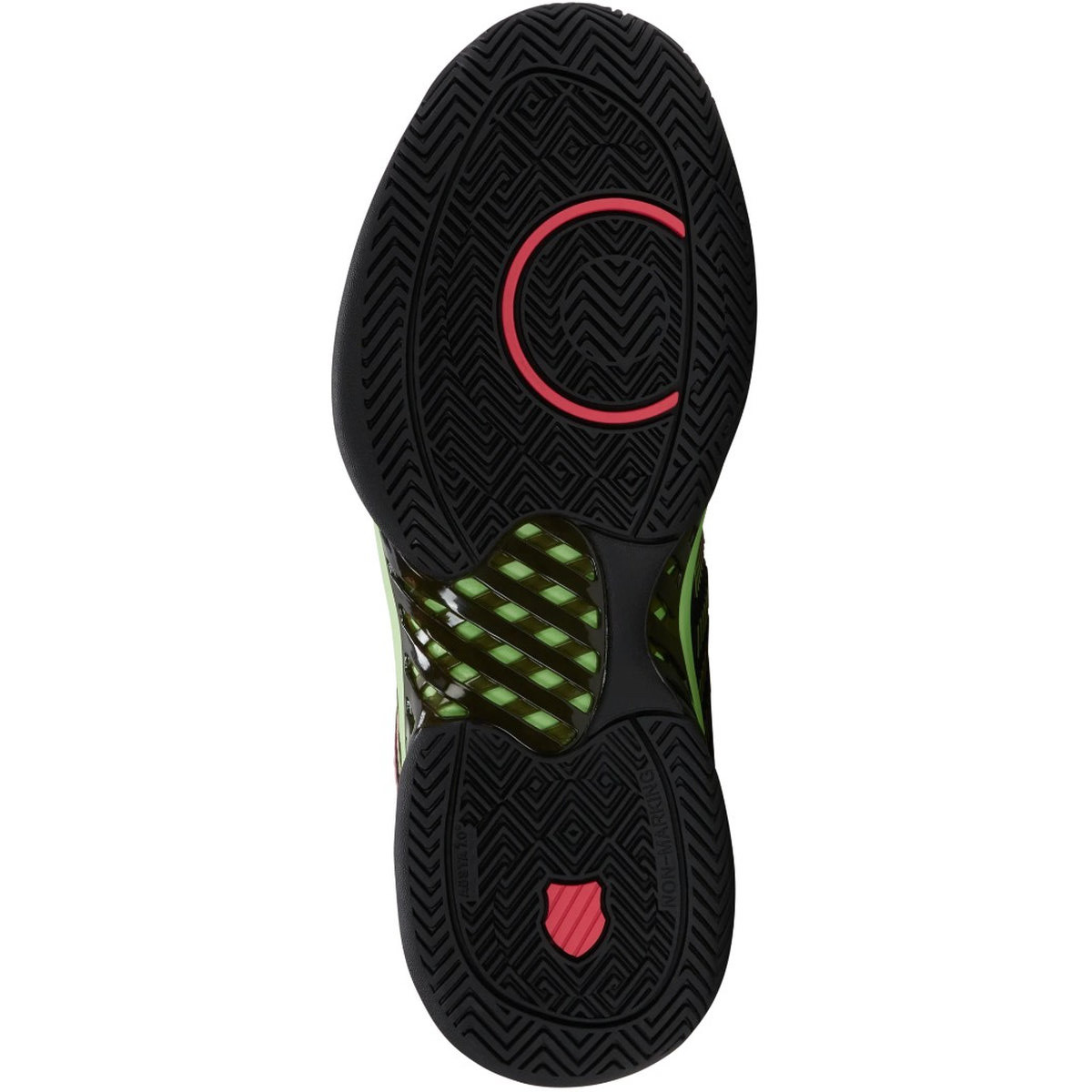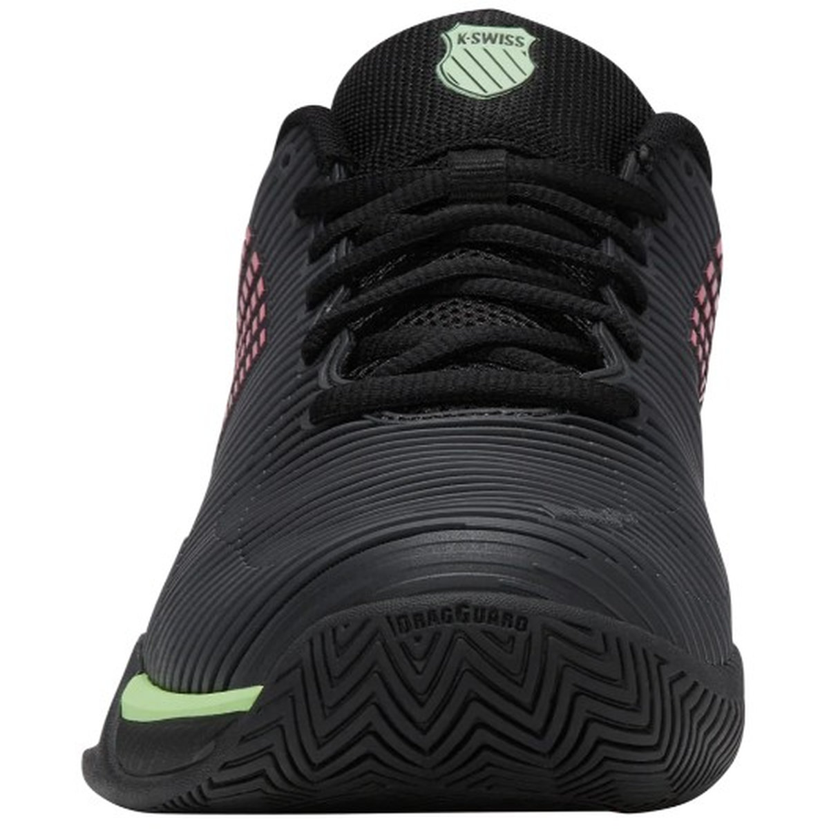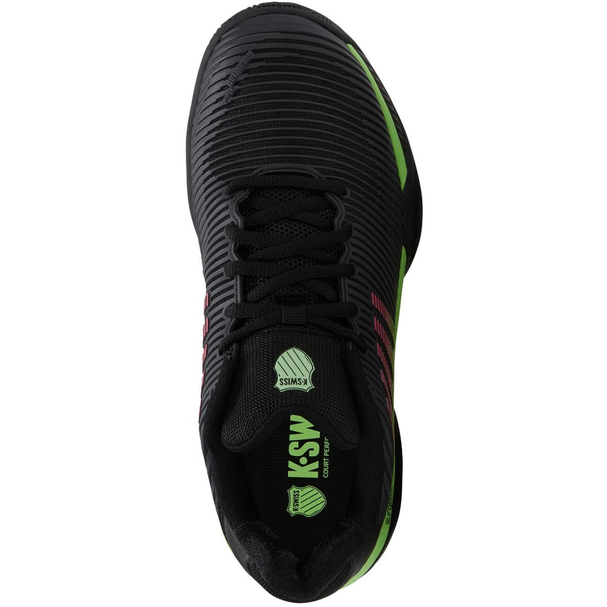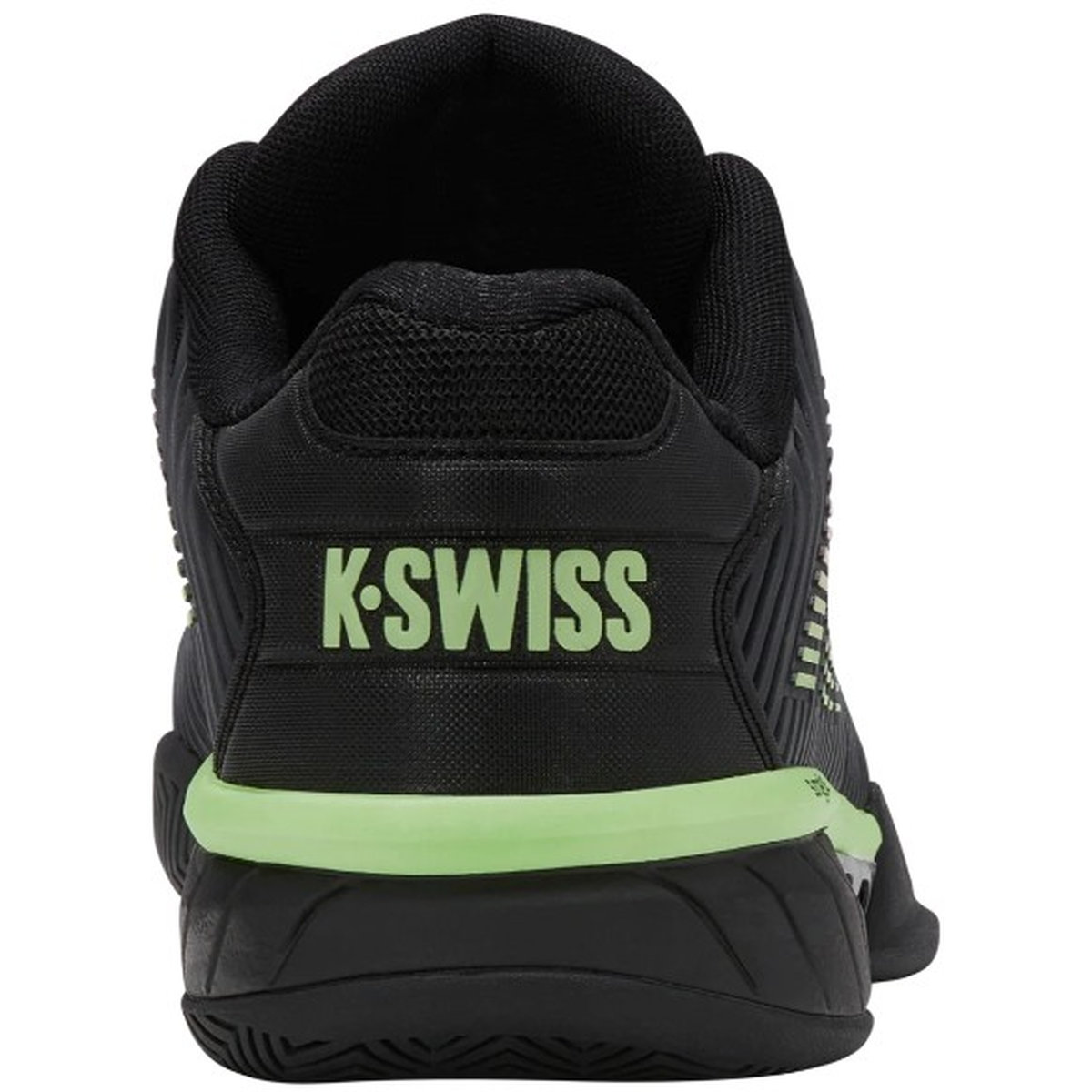 K-Swiss Men's Hypercourt Express 2 Wide (2E) Tennis Shoes (Black/Soft Neon Green/Neon Lava) (Model #06806-034)
