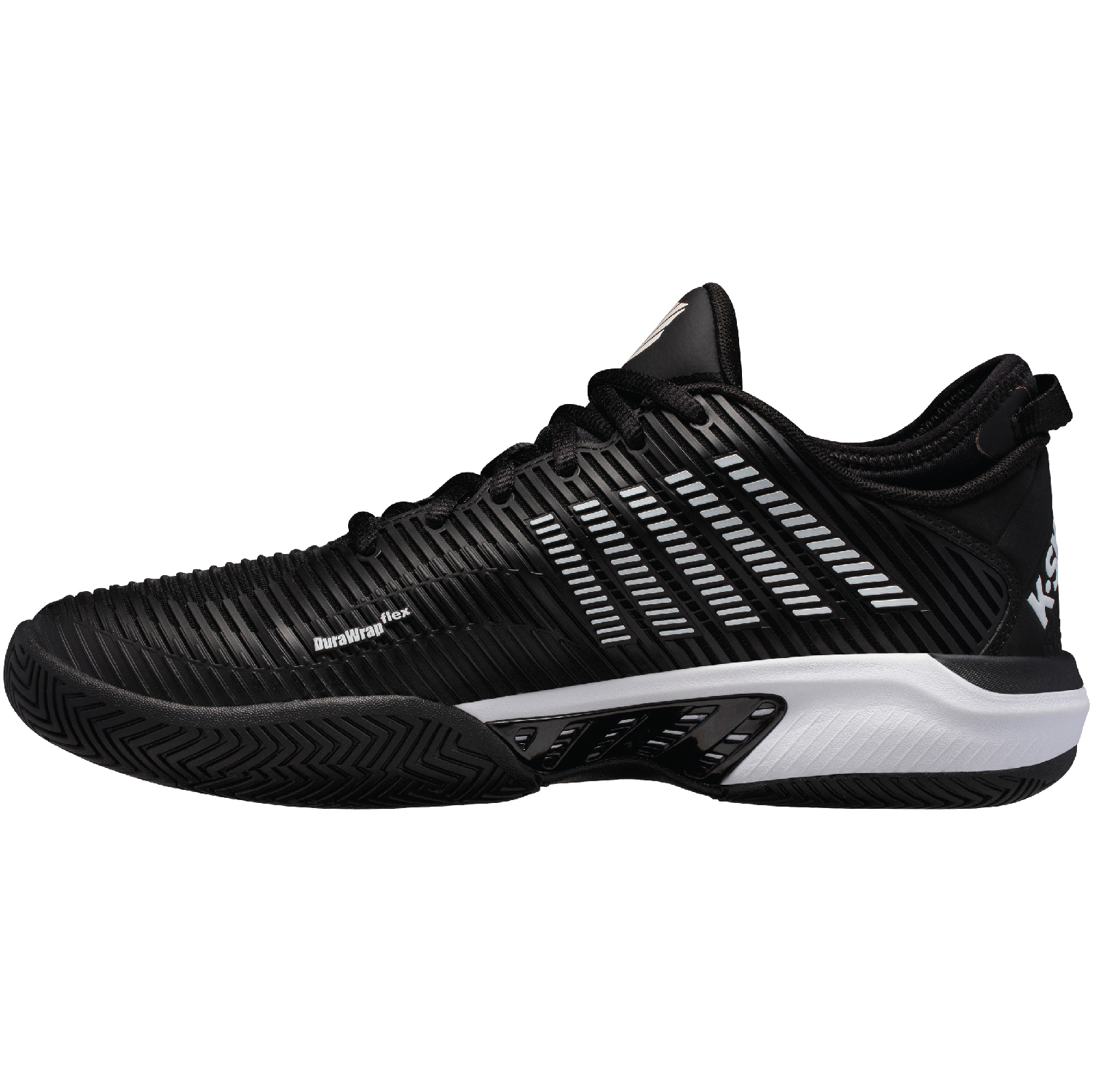 Building on the success of the most important tennis franchise in company history, Hypercourt, K-Swiss introduces a new hero model to the family targeting a young, competitive, aggressive player. The Hypercourt Supreme incorporates new technologies including Surge 7.0 for maximum energy return and Dragguard 7.0, elevating outsole durability. Additionally, a comfortable upper bootie construction ensures a secure fit.
