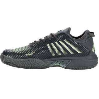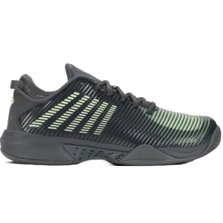 The K-Swiss Men’s Hypercourt Supreme Tennis Shoes (Urban Chic/Soft Neon Green) targets a competive player who is looking for a light and responsive shoe. It incorporates Surge 7.0 for maximum energy return and Dragguard 7.0 for outsole durability. It’s unique heel feature provides a comfortbale, secure fit. Worn by ATP and WTA professional athletes.