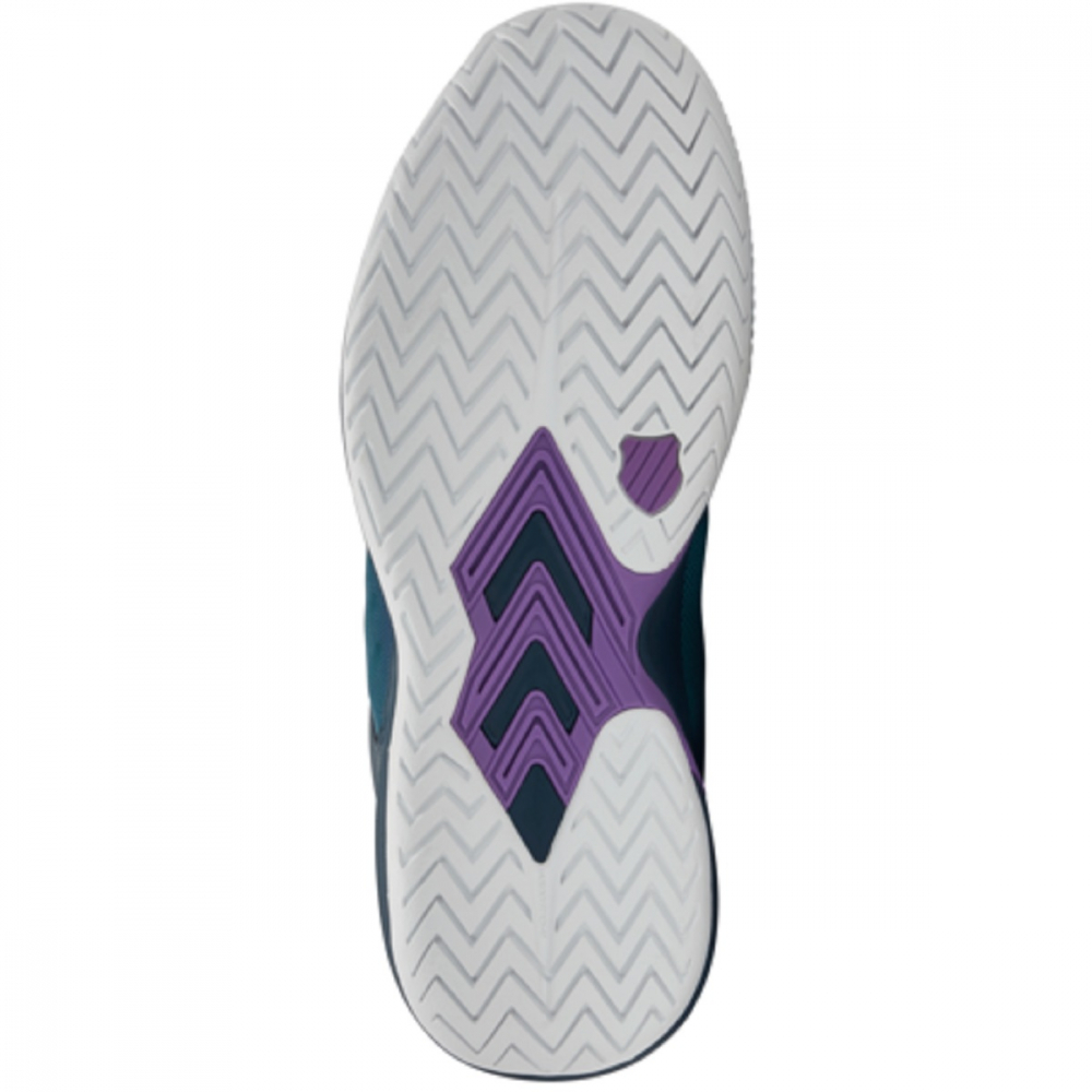 The KSwiss Men’s Ultrashot Tennis Tennis Shoe (Colonial Blue/Reflecting Pond/Amethyst Orchid/Biscay Bay) is a new addtion to the Ultra family that incorporates key visual elements such as the 5 chevron stripes on the quarter, enlarged shield logo on the heel for on-court brand visibility and a lifestyle/tennis vibe. The Ultrashot Team gives adequate level of support and durability for various playing levels with the Surgelite midsole for comfort and stability, uses the same rubber outsole and midfoot TPU shank as the Ultrashot 3, the Dragguard 7.0 and 180 Plantar Chassis Support for lateral movement. It also has a breathable mesh upper with translucent paneling for a modern sophisticated design.