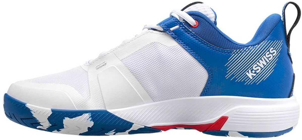 K-Swiss Men's Ultrashot Team Tennis Shoes (White/Classic Blue/Berry Red)