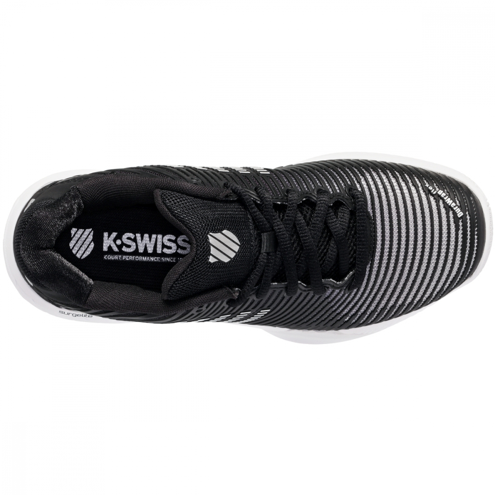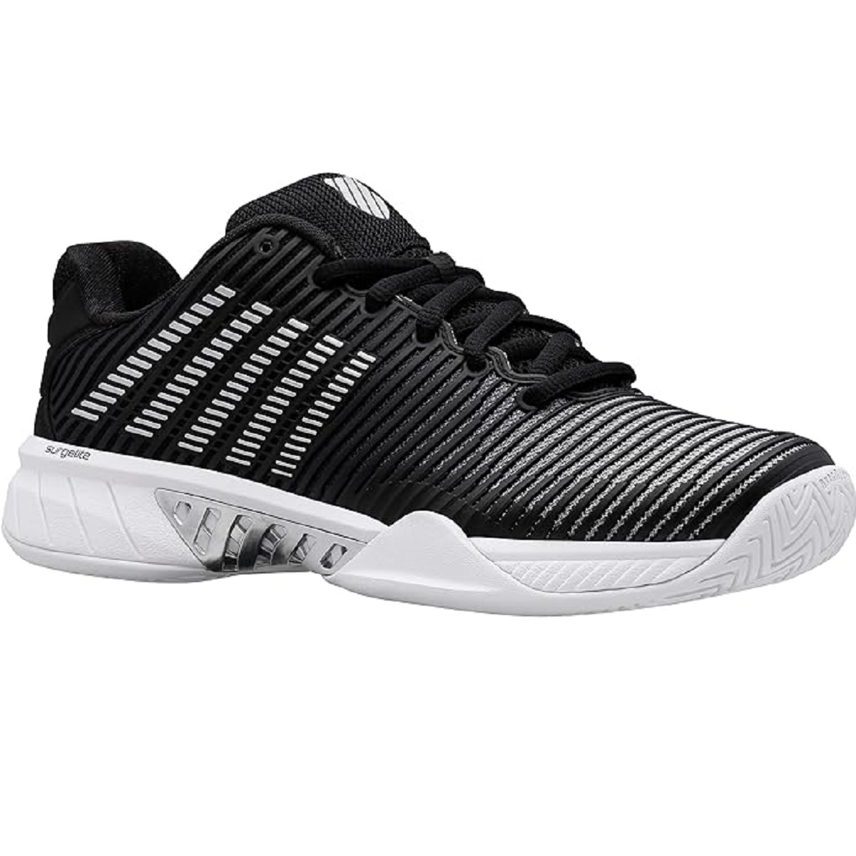 K-Swiss best-selling shoe, the K-Swiss Women’s Hypercourt Express 2 Tennis Shoe, is light, comfortable, breathable, and has a generous fit, making it the ideal choice for a variety of playing styles and levels. Durawrap Flex, gives the shoe support with no break-in period, while Surgelite midsole technology provides all-day comfort.