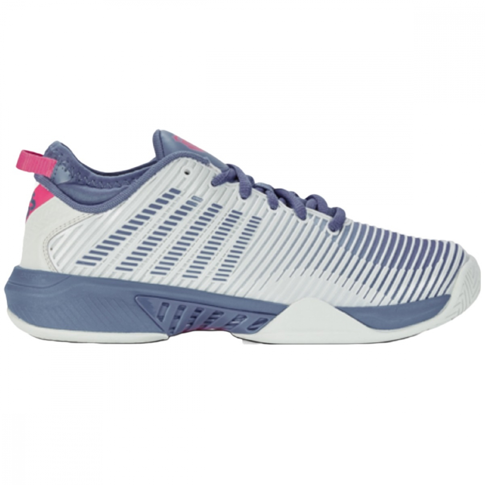 The K-Swiss Women’s Hypercourt Supreme Tennis Shoes (Blue Blush/Infinity/Carmine Rose) buillds on the success of the most important tennis franchise in company history, Hypercourt, K-Swiss introduces a new hero model to the family targeting a young, competitive, aggressive player. The K-Swiss Women’s Hypercourt Supreme Tennis Shoe incorporates new technologies including Surge 7.0 for maximum energy return and Dragguard 7.0, elevating outsole durability. Additionally, a comfortable upper bootie construction ensures a secure fit.