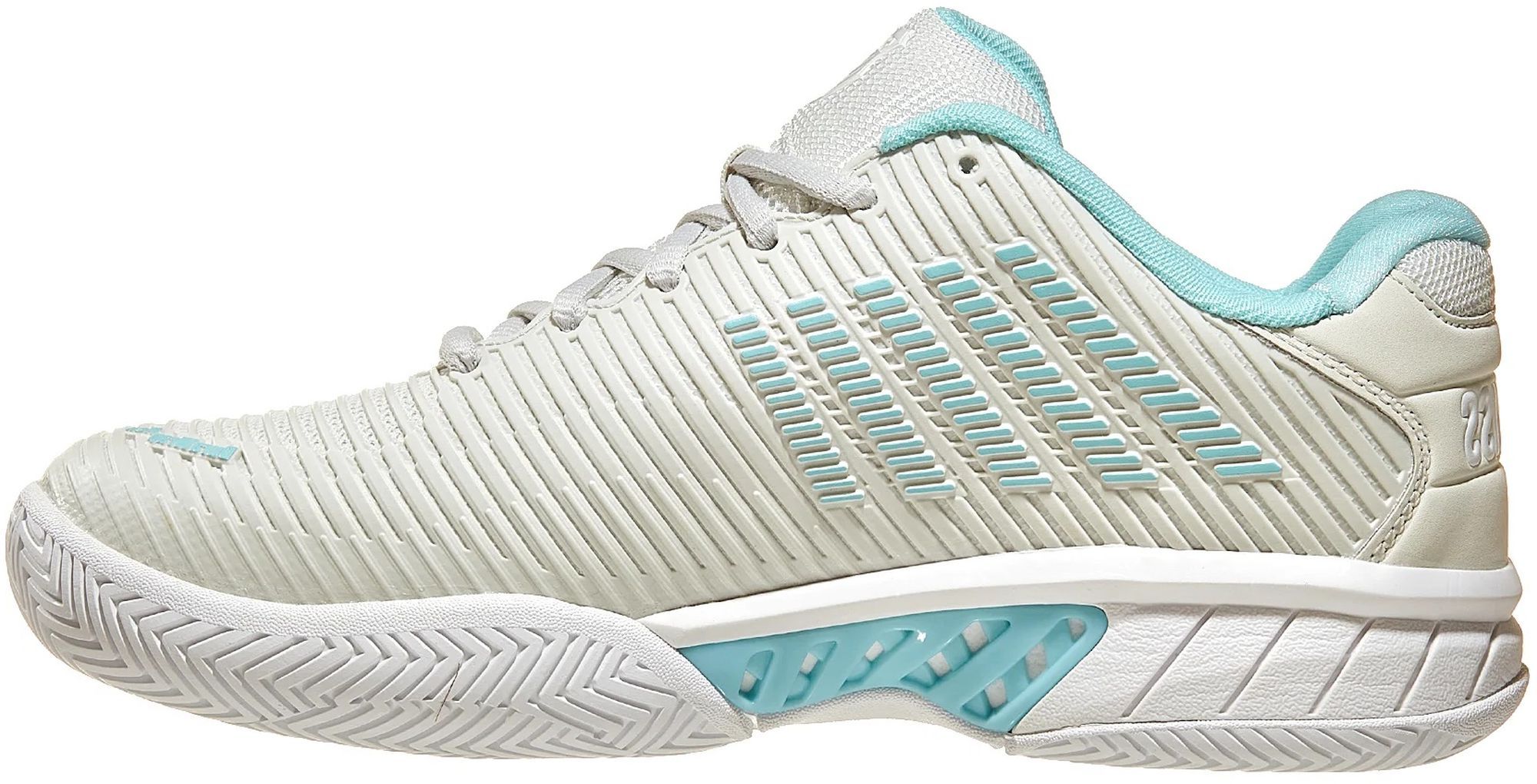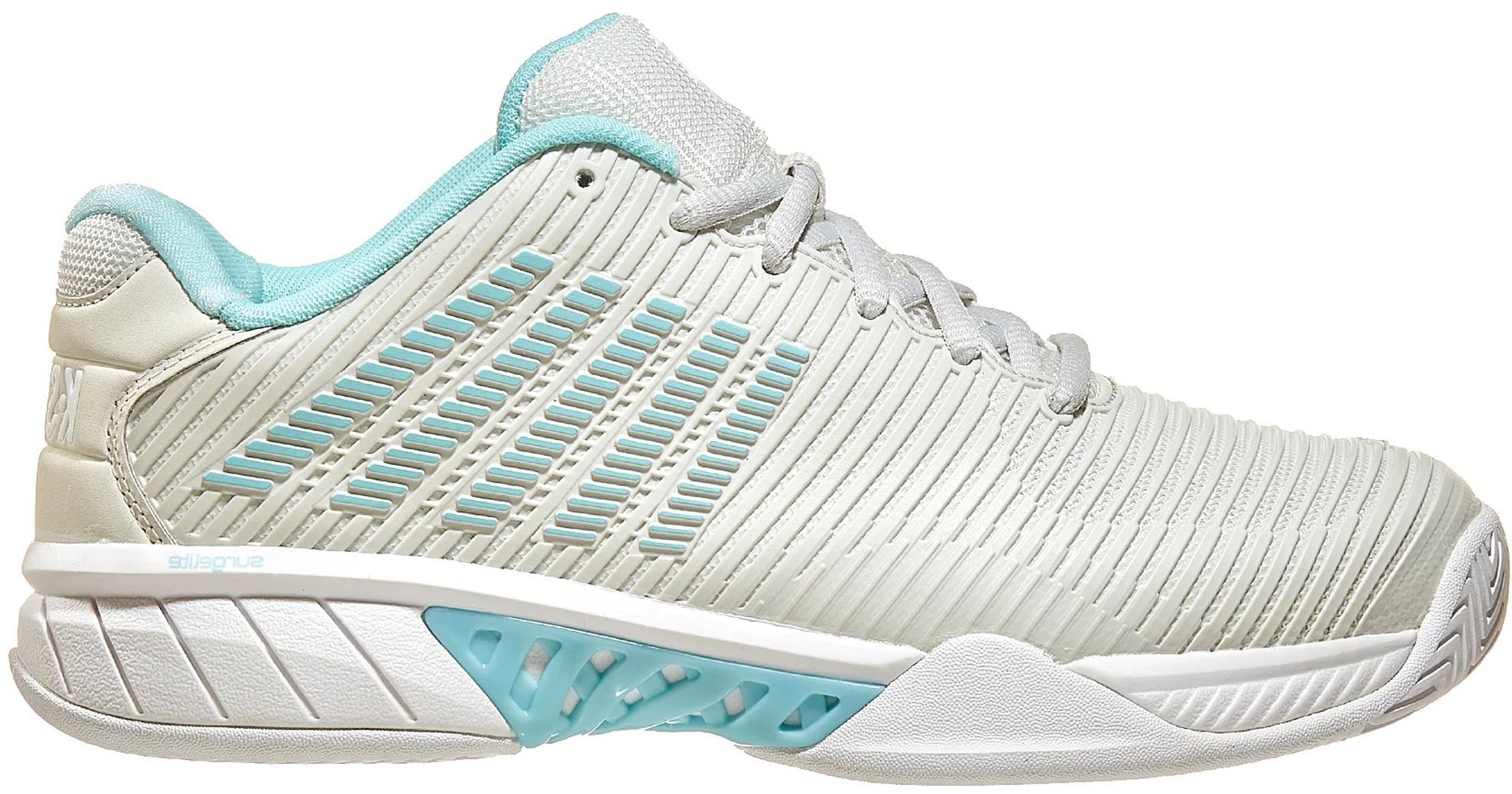 The K-Swiss Women’s Hypercourt Express 2 Tennis Shoe is light, comfortable, breathable, and has a generous fit. That makes it the ideal choice for a variety of playing styles and levels. Durawrap Flex, gives the shoe support with no break-in period, while Surgelite midsole technology provides all day comfort.
