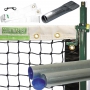 The Luxury PICKLEBALL Court Equipment Package is ideal for someone looking for all the necessary equipment parts to outfit a pickleball court: from the Post and Net to the sleeves that go in the ground to hold the posts, and a center strap with pipe anchor to hold the center strap down in the middle of the court.