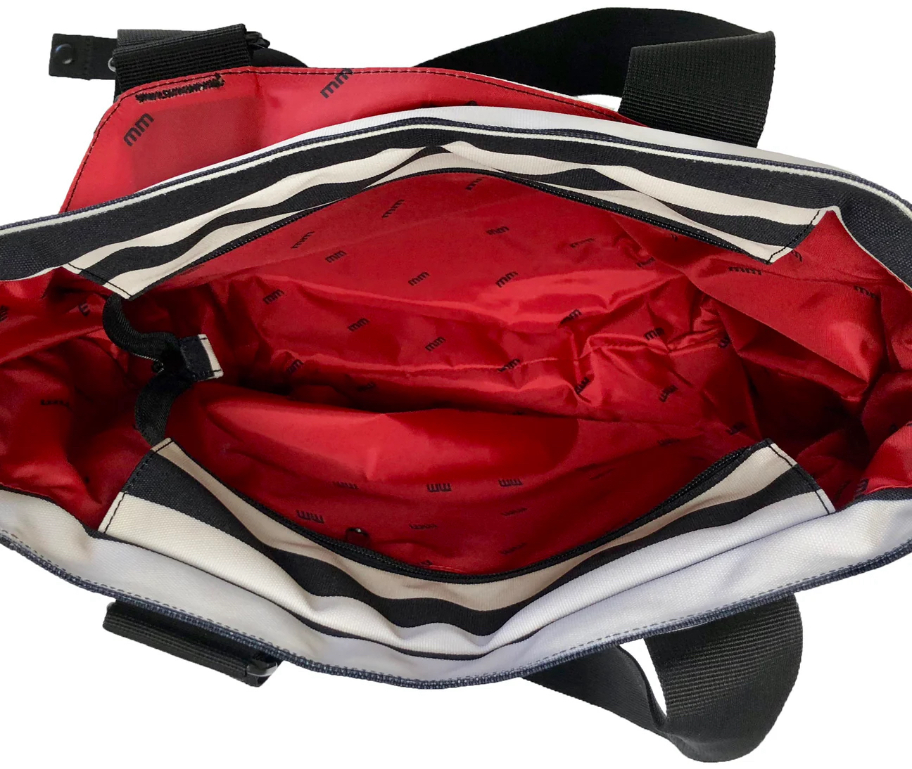 The Maggie Mather Original Tennis Tote with zipper closure is a durable, water repellent tote. The Original Tennis Tote has two expandable shoulder straps, a back zipper pocket, and a large front pocket for racquets or laptop.
