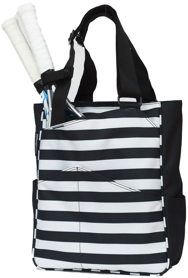 Maggie Mather Original Tennis Tote (Black/White Stripes)