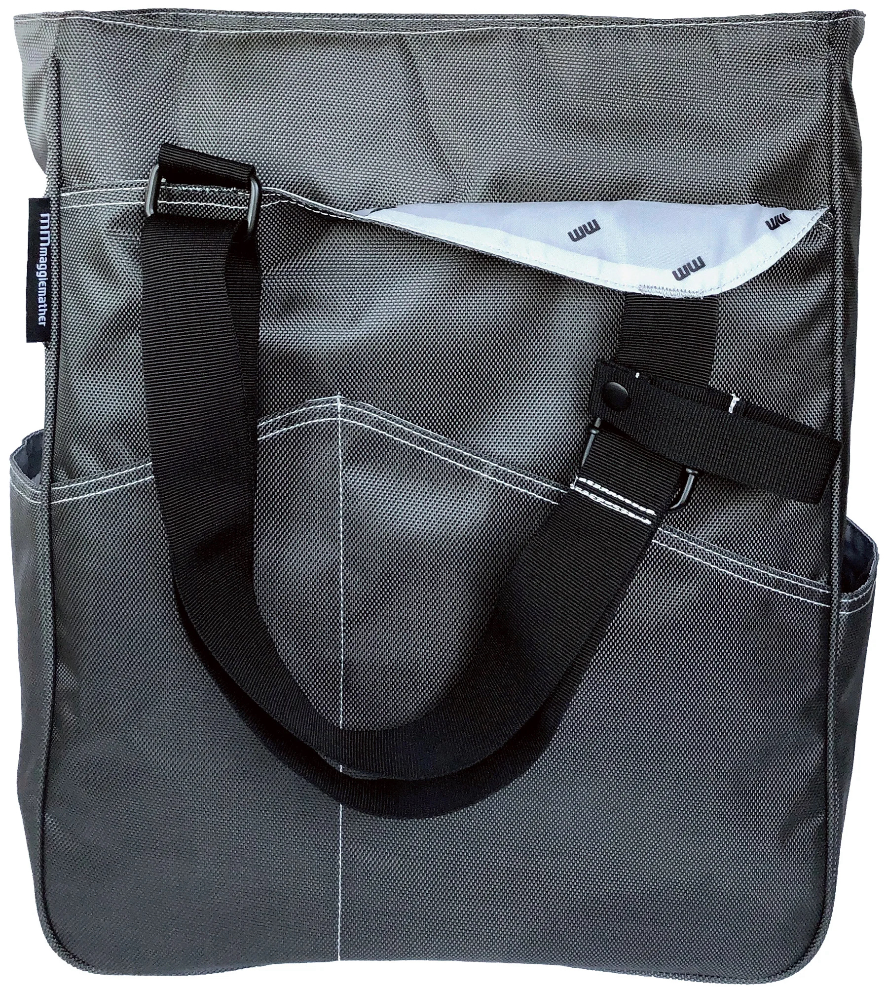 The Maggie Mather Original Tennis Tote with zipper closure is a durable, water repellent tote. The Original Tennis Tote has two expandable shoulder straps, a back zipper pocket, and a large front pocket for racquets or laptop.