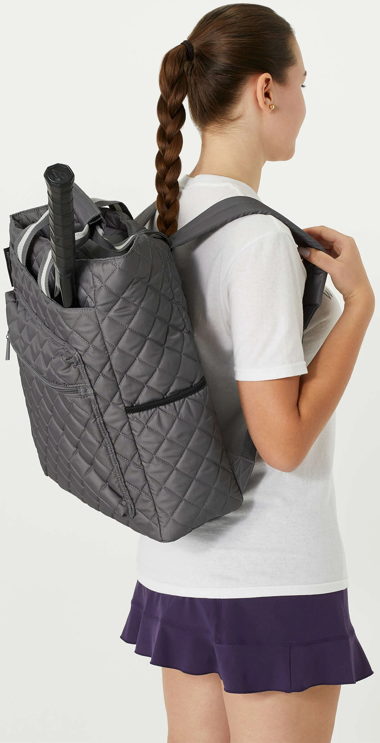 Maggie Mather Quilted Tennis Racquet Backpack (Pewter)