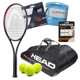 This is the Marin Cilic Pro Player Tennis Gear Bundle. You’ll get a HEAD Auxetic Prestige Pro Tennis Racquet combined with the Head Tour Team 12R Monstercombi Tennis Bag that Marin uses. The HEAD Auxetic Prestige Pro comes strung with the hybrid setup Marin is said to use: Babolat VS Touch Blue 16g Natural Gut Tennis String @55lbs. for the Mains and Luxilon ALU Power 125 Silver Tennis String @55lbs. for the Crosses. This Marin Cilic Bundle also comes with a Head Prime Pro Tennis Racquet Overgrip 3 pack, and a can of tennis balls.