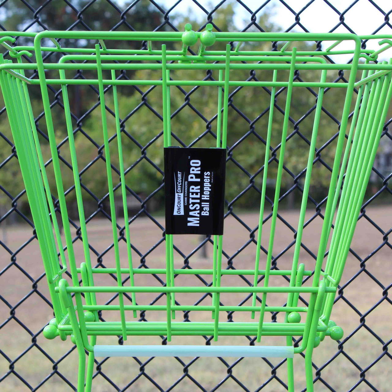 The OnCourt OffCourt Master Pro Stand-Up 100- Ball Hopper is also available in an 85-ball, 72-ball, 50-ball, and a 36-ball junior model.