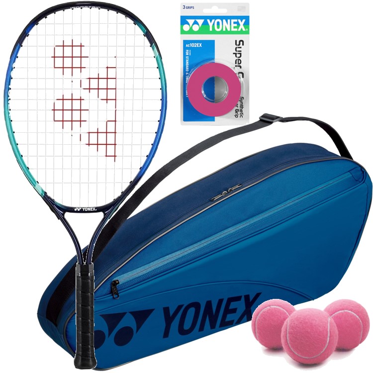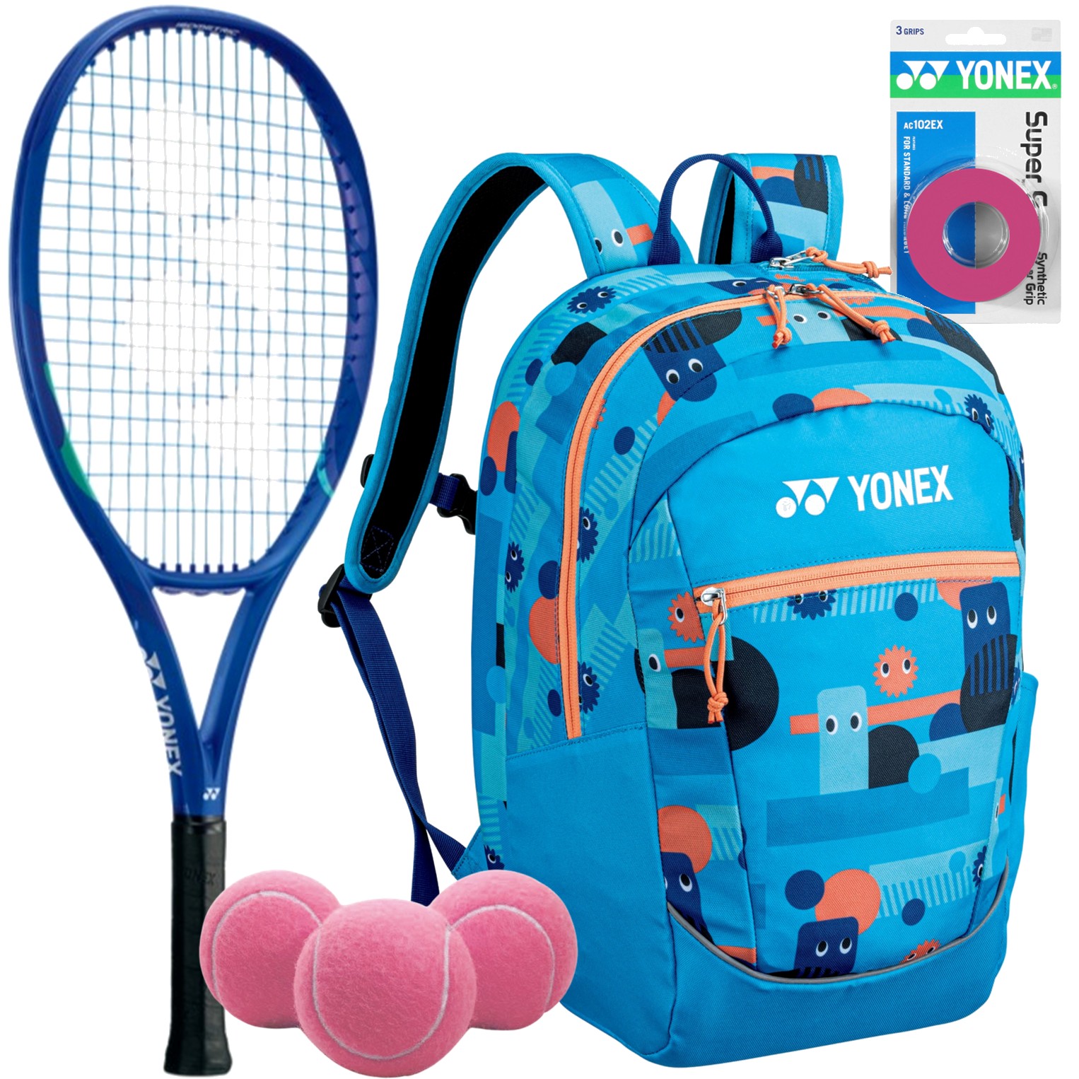 The Naomi Osaka Pro Player Junior Beginner Gear Bundle is the perfect tennis starter set for young girls who want to develop their skills with confidence, style, and power—just like Naomi. This bundle features the Yonex EZONE 25" Blast Blue Junior Racquet (8th Gen), a matching Ocean Blue backpack, pink overgrips, and pink tennis balls. Ideal for players aged 9–10, the lightweight, all-graphite racquet delivers explosive power and comfort, while the practical backpack makes it easy to carry everything needed for lessons, practices, or first matches.
