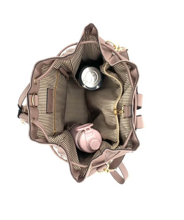 The NiceAces Dara Tennis & Pickleball Backpack (Mauve) is made from a Saffiano vegan leather with a beautiful drawstring closure complete with tassel ends. It is designed to accommodate tennis racquets or pickleball paddles in an easily accessible interior pocket. Four exterior pockets ensure you have room for all your needs. This uniquely designed convertible bag can be worn over the shoulder or as a backpack. It is designed to stay upright and maintain its shape.